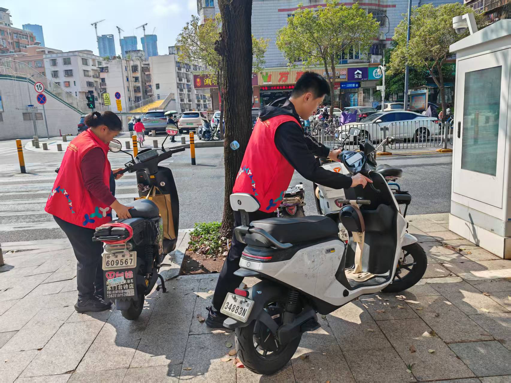 花场社区整理路面乱停放电动车