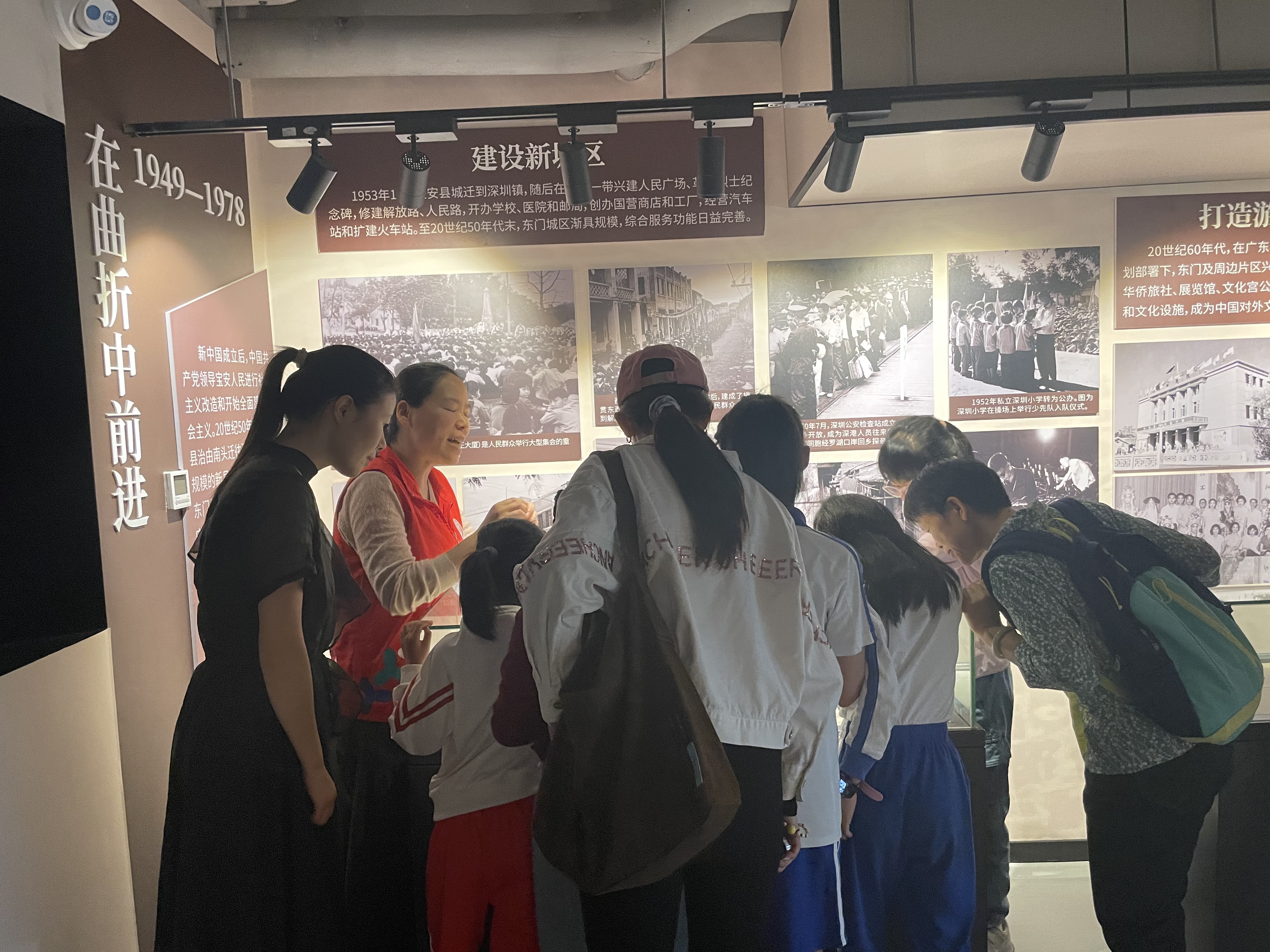 活动现场,亲子们在讲解员和社工的带领下参观红色记忆馆,了解东门及深圳的发展史。活动现场亲子们兴致勃勃,认真听讲,对自己不了解的历史时事不断向讲解员提问。亲子们为东门的历史自豪,为东门的发展欣喜,并表示一定会继承先辈们敢想敢干的革命意志和改革精神,为东门未来的发展贡献自己的力量。