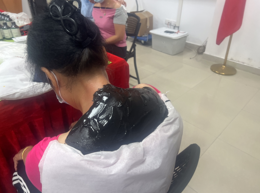 5月19日下午,民生微实事暖心“艾”护·健康体魄花场社区科普进万家项目在同乐大厦同庆阁9楼活动室顺利开展,吸引了40多位居民参与。活动现场居民们体验了按摩放松、刮痧、动罐拉筋、泥灸祛湿等多项体验项目,并现场教学简单实用的养生操,让居民们在忙碌之余放松身心,学习健康知识。