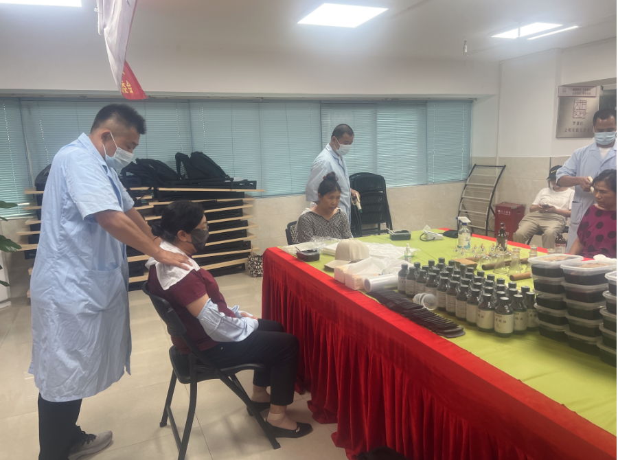5月19日下午,民生微实事暖心“艾”护·健康体魄花场社区科普进万家项目在同乐大厦同庆阁9楼活动室顺利开展,吸引了40多位居民参与。活动现场居民们体验了按摩放松、刮痧、动罐拉筋、泥灸祛湿等多项体验项目,并现场教学简单实用的养生操,让居民们在忙碌之余放松身心,学习健康知识。
