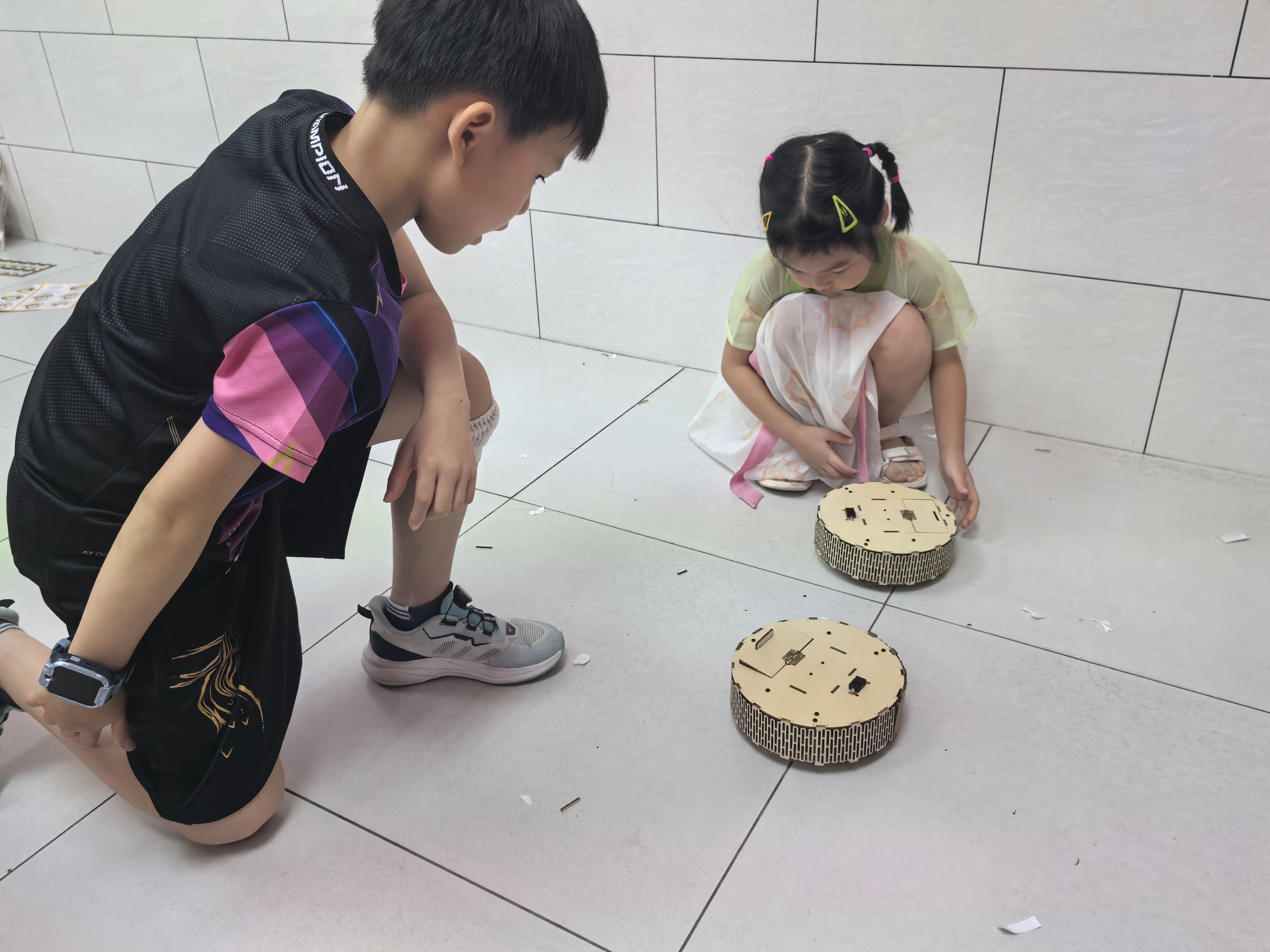 当第一台自制机器人缓缓启动,精准避开模拟障碍物并“清扫”指定区域时,现场响起掌声。10岁的小雨(化名)捧着自己组装的机器人,第一时间就给前来的妈妈分享说:“刚才看它不动,急得我手心冒汗,现在觉得自己像造出了一个‘小助手’,特别有成就感!”