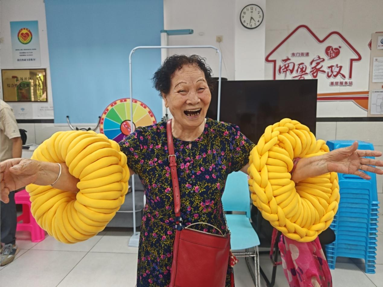 活动中,专业老师细致讲解冰岛抱枕的文化渊源与制作工艺,长者们专注聆听、认真观摩,手持毛线针,跟随老师的示范,一步步学习穿插编织技巧。从生疏到熟练,在相互交流与协作中,大家逐渐掌握了独特的钩织方法。当一个个色彩温暖、造型别致的抱枕在手中成型,长者们脸上洋溢着自豪的笑容。