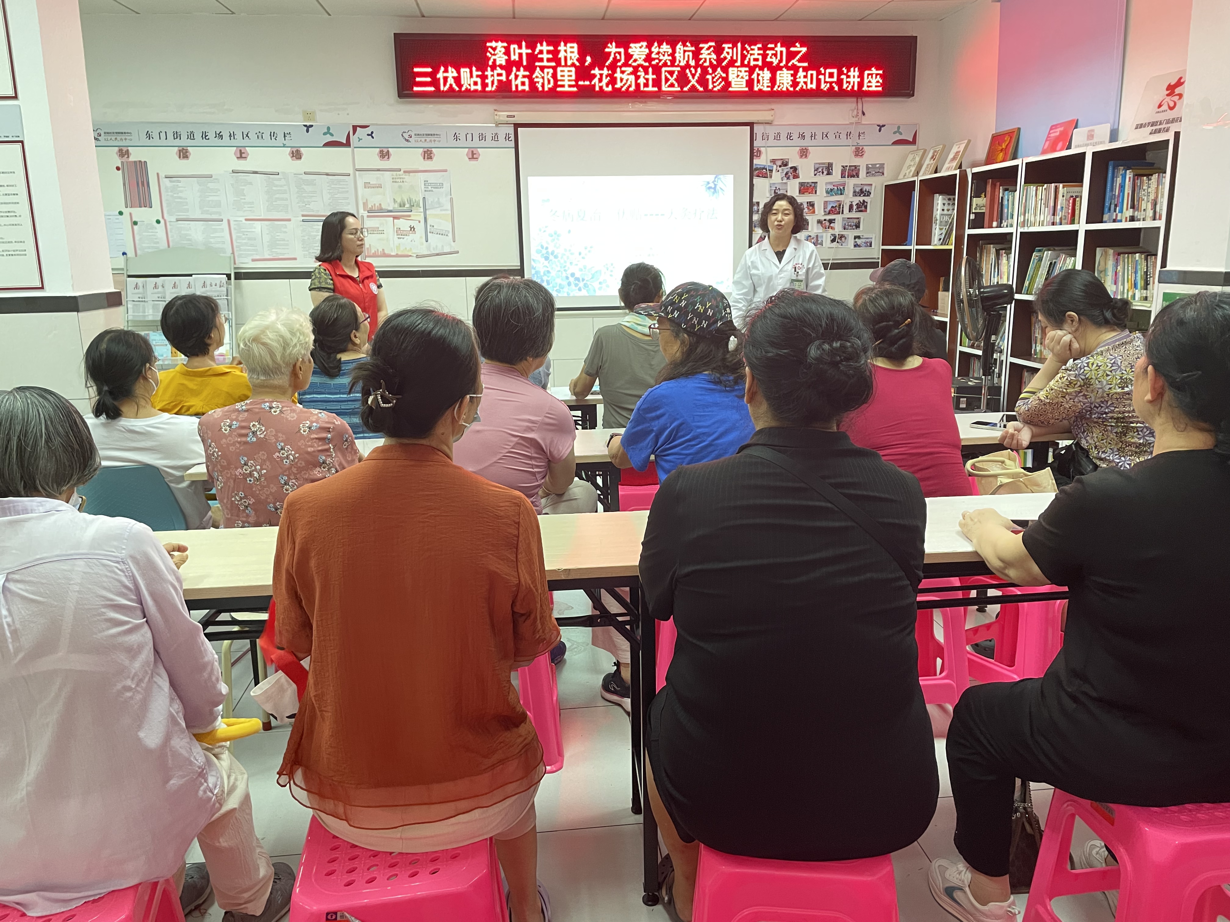 为传播传统医学知识,助力居民提升健康水平。2025年7月21日,花场社区党委、花场社区党群服务中心北斗社工深圳市罗湖区书院街社区健康服务中心组织辖区老人开展了三伏贴护佑邻里--花场社区义诊暨健康知识讲座。吸引了近30位社区长者参与。
