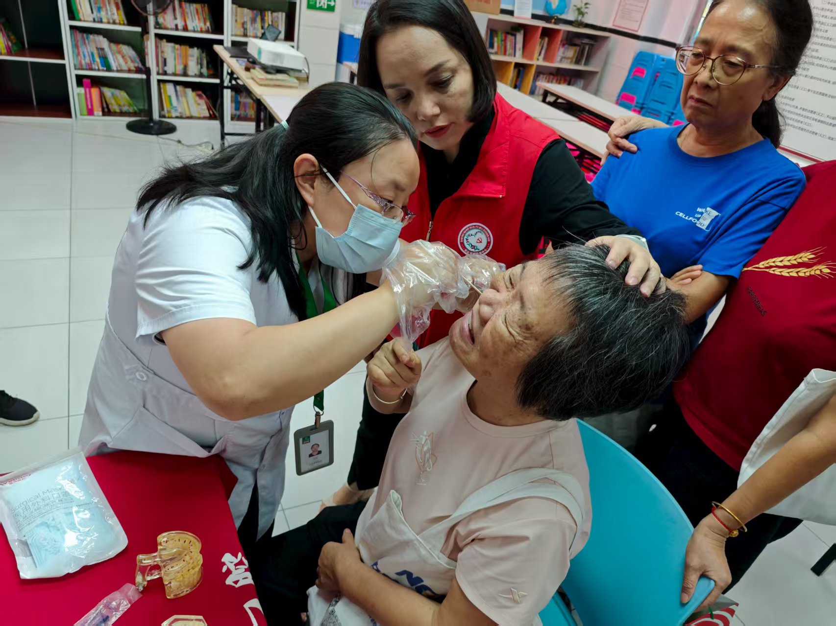 讲座结束后,社工引导社区长者排队进行义诊。沈医生为患有口腔疾病的长者提供义诊服务,仔细进行口腔检查并提出相关治疗建议。“今天真是来对了!”王阿姨攥着纸条笑盈盈地说,“以前总觉得牙不疼就没事,听了才知道护理牙齿有这么多讲究。回家我就把牙线用起来,还得跟我家老头说说,让他也别偷懒。以后社区再办这样的讲座,我肯定还来!”