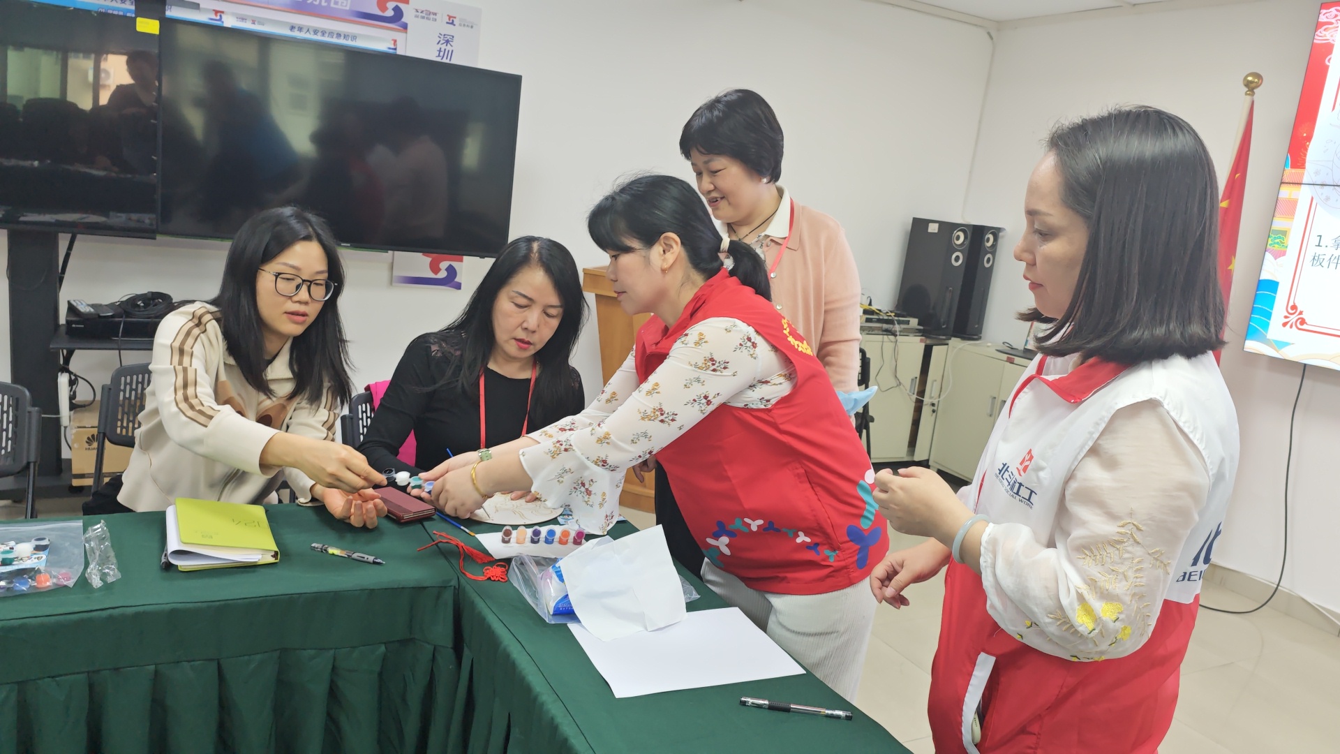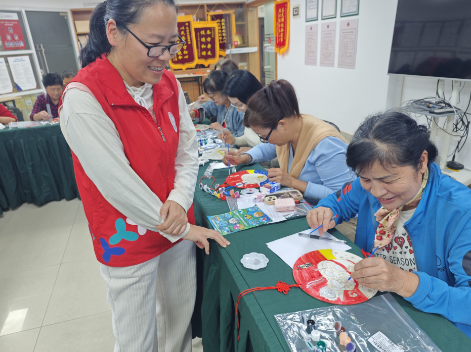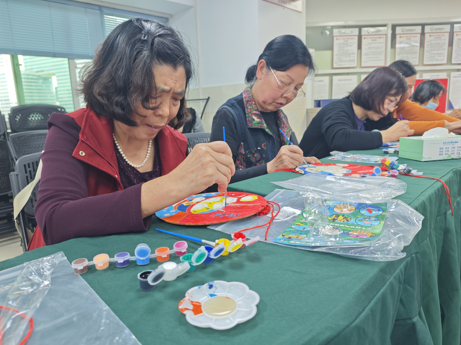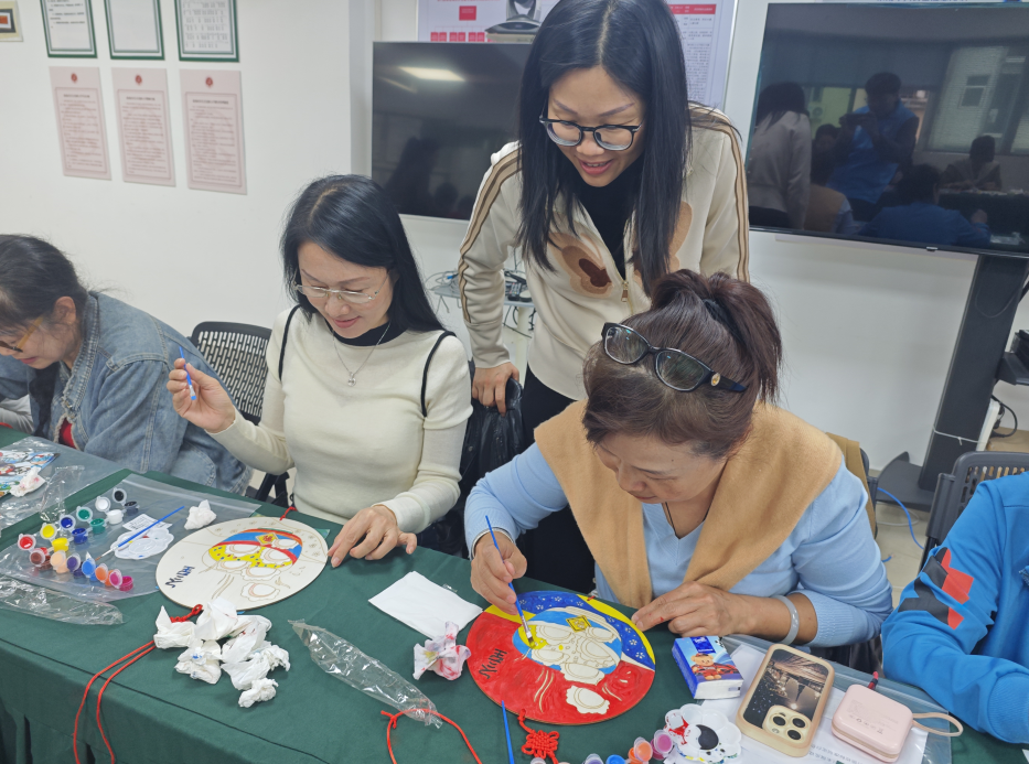 手工制作环节是本次活动的核心。为确保每位长者都能顺利参与,社工提前准备了丰富的材料包,包括画框、颜料、画笔、装饰配件以及印有冬至元素的模板等。社工首先详细演示了装饰画的制作步骤,从底色涂抹、元素勾勒到细节装饰,每一个环节都讲解得细致入微,并针对可能出现的问题给出了实用的小技巧。考虑到部分长者动手能力稍弱,社工耐心指导他们调色、绘画,确保不让一位长者掉队。