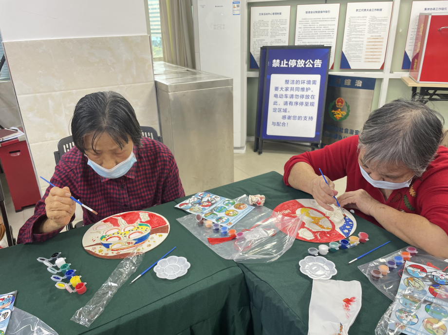 在轻松愉悦的音乐声中,长者们迅速投入到创作中。大家充分发挥自己的想象力和创造力,有的以“冬至团圆”为主题,画出了一家人围坐吃汤圆的温馨场景;有的则聚焦“节气生机”,用鲜艳的色彩描绘出梅花绽放、暖阳初升的画面,寓意着冬至过后阳气渐生的美好愿景;还有的长者巧妙运用材料包中的装饰配件,为画作增添了立体层次感。现场不时传来阵阵欢声笑语,长者们相互交流创作思路,分享制作心得,原本互不熟悉的邻里在协作与互动中拉近了距离,仿佛一家人般温暖和睦。当看到自己亲手完成的装饰画时,张阿姨脸上露出了满意的笑容:“平时在家挺孤单的,这次活动不仅学会了做手工,还认识了好几个老邻居,心里特别暖和,这冬至过得太有意义了。”活动接近尾声,长者们纷纷展示自己的作品,每一幅装饰画都承载着大家对冬至的理解和对生活的热爱。