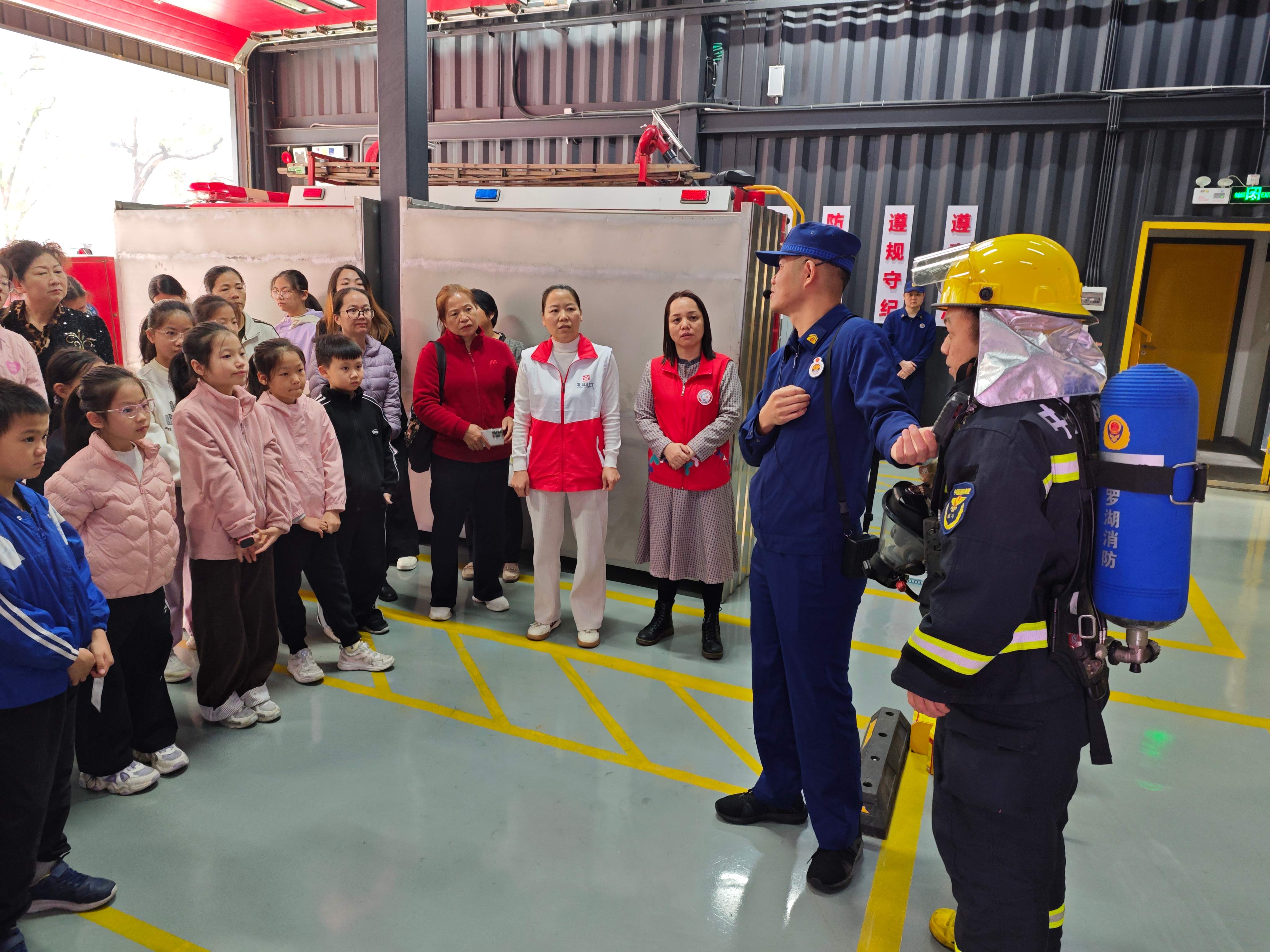 罗湖家园网讯:为进一步提升社区青少年的科学消防意识,帮助青少年掌握实用消防技能,促进儿童友好社区建设,为社区安全提供助力,2026年1月28日,花场社区党群服务中心北斗社工携手罗湖消防救援大队东门中路消防站精心组织辖区青少年开展了“小小安全员”花场社区青少年消防站科学探索之旅活动。近30名社区青少年及部分家长代表一同走进消防站,沉浸式感受消防魅力,学习消防知识。