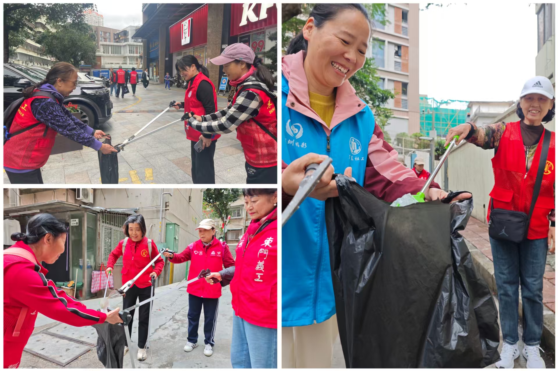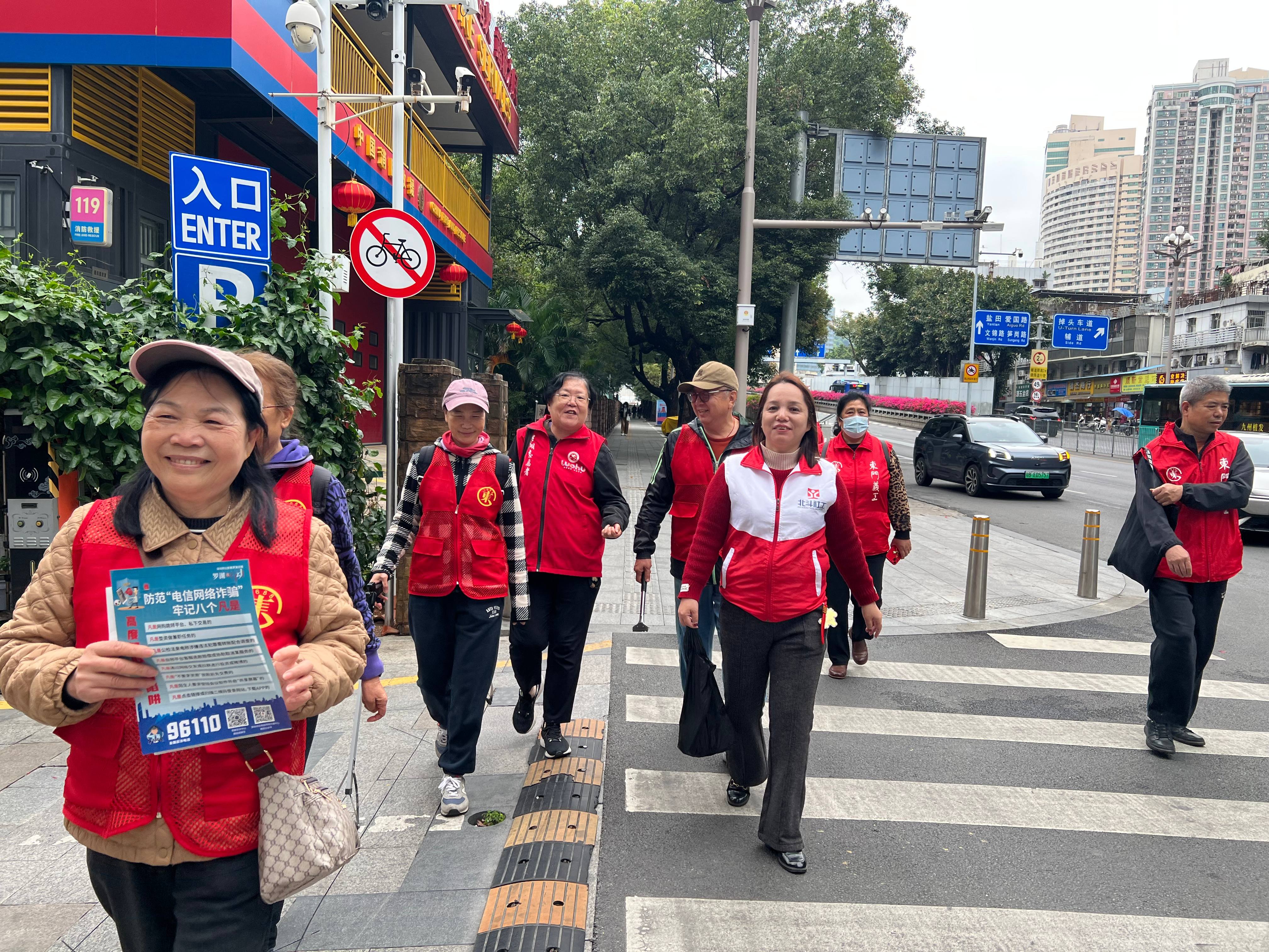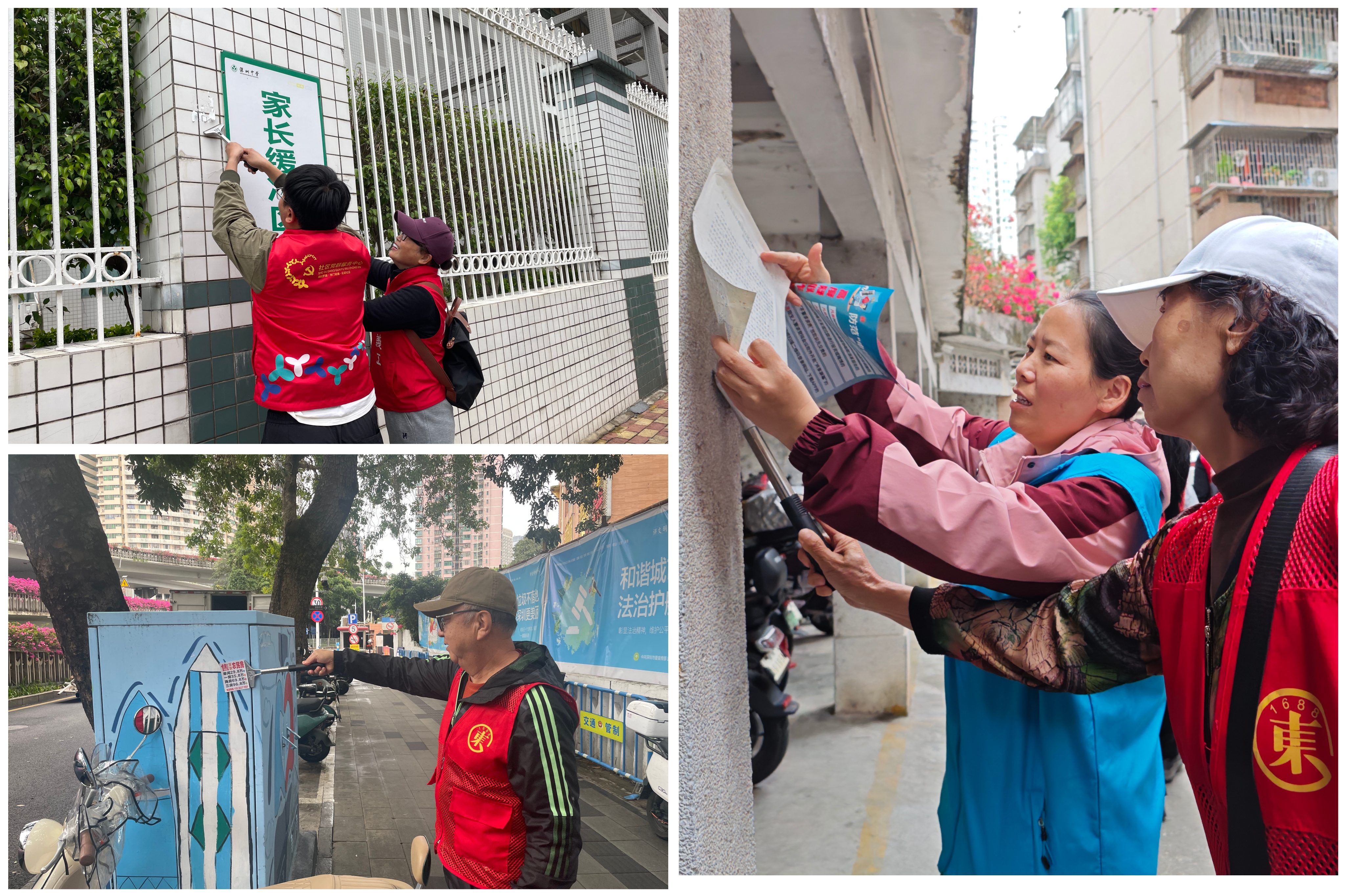 随后,志愿者们在社工的带领下分为两组,深入社区开展志愿服务。大家沿着指定路线,清理路面垃圾与墙面小广告,规范电动车停放,并向辖区居民和快递员、外卖员等新就业群体宣传安全知识、社区政策与志愿服务精神,以实际行动践行“奉献、友爱、互助、进步”的志愿精神。