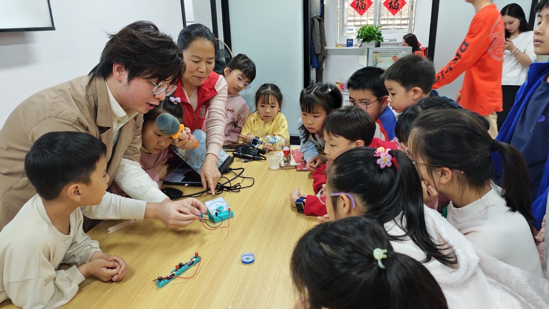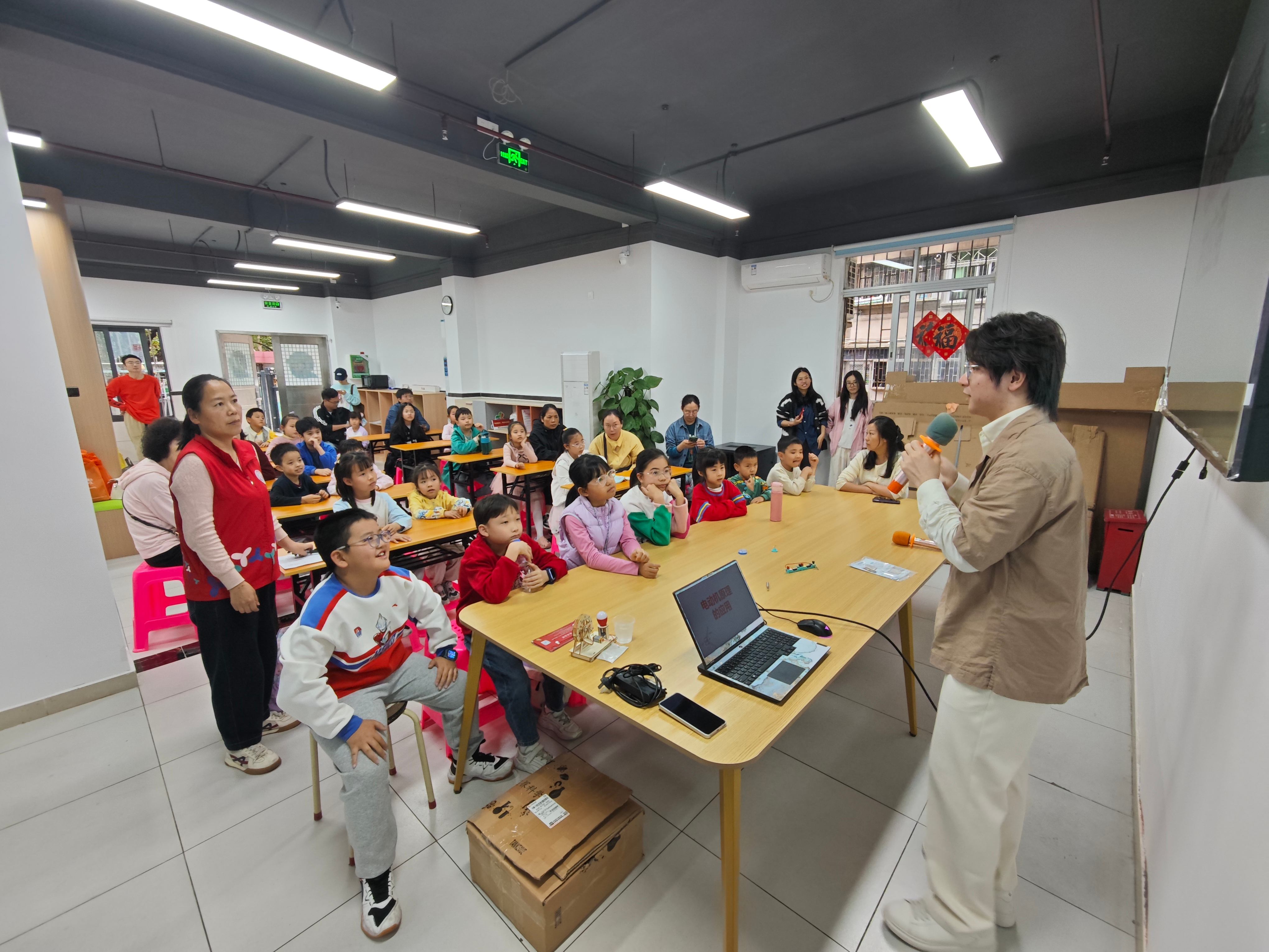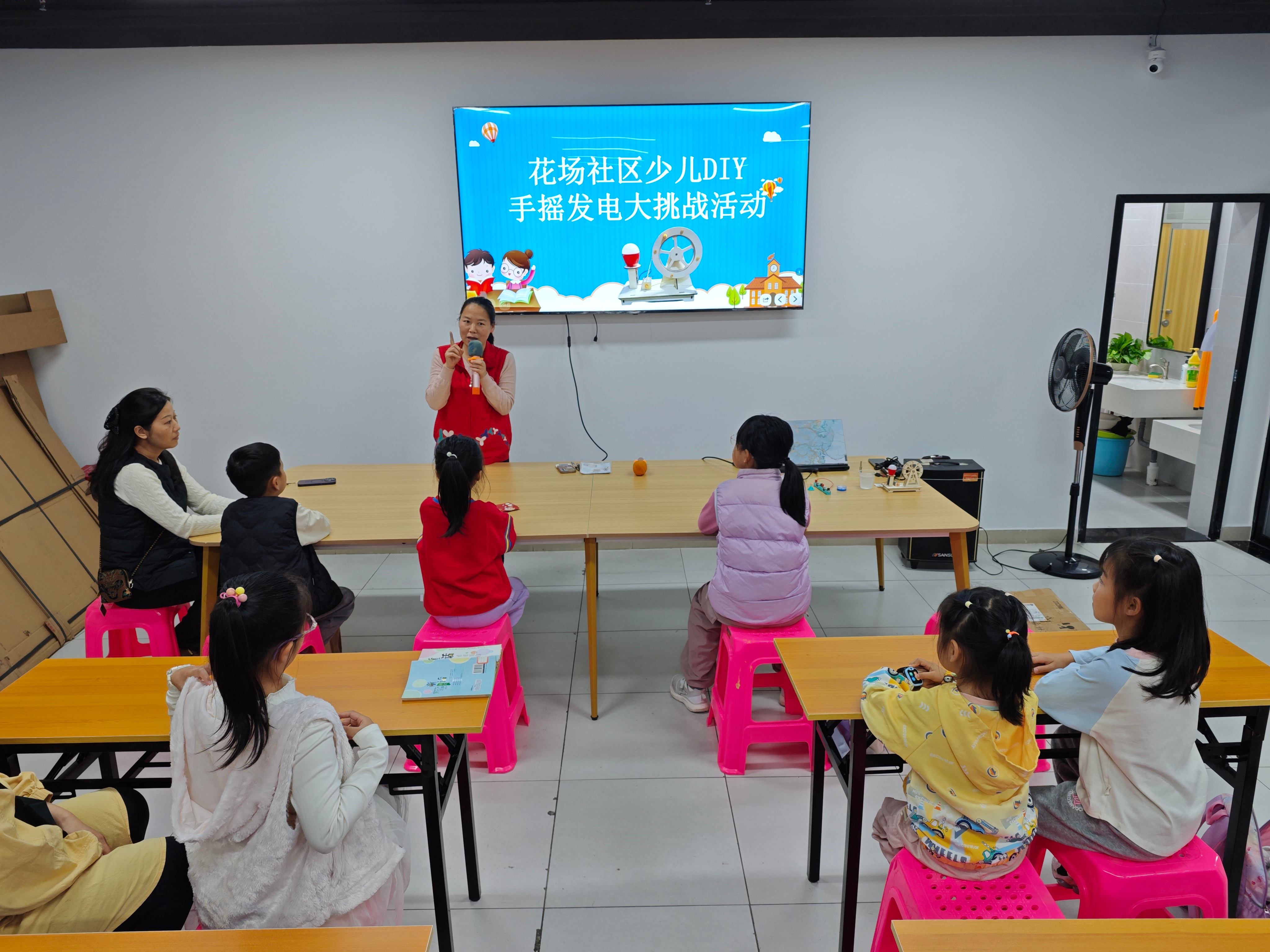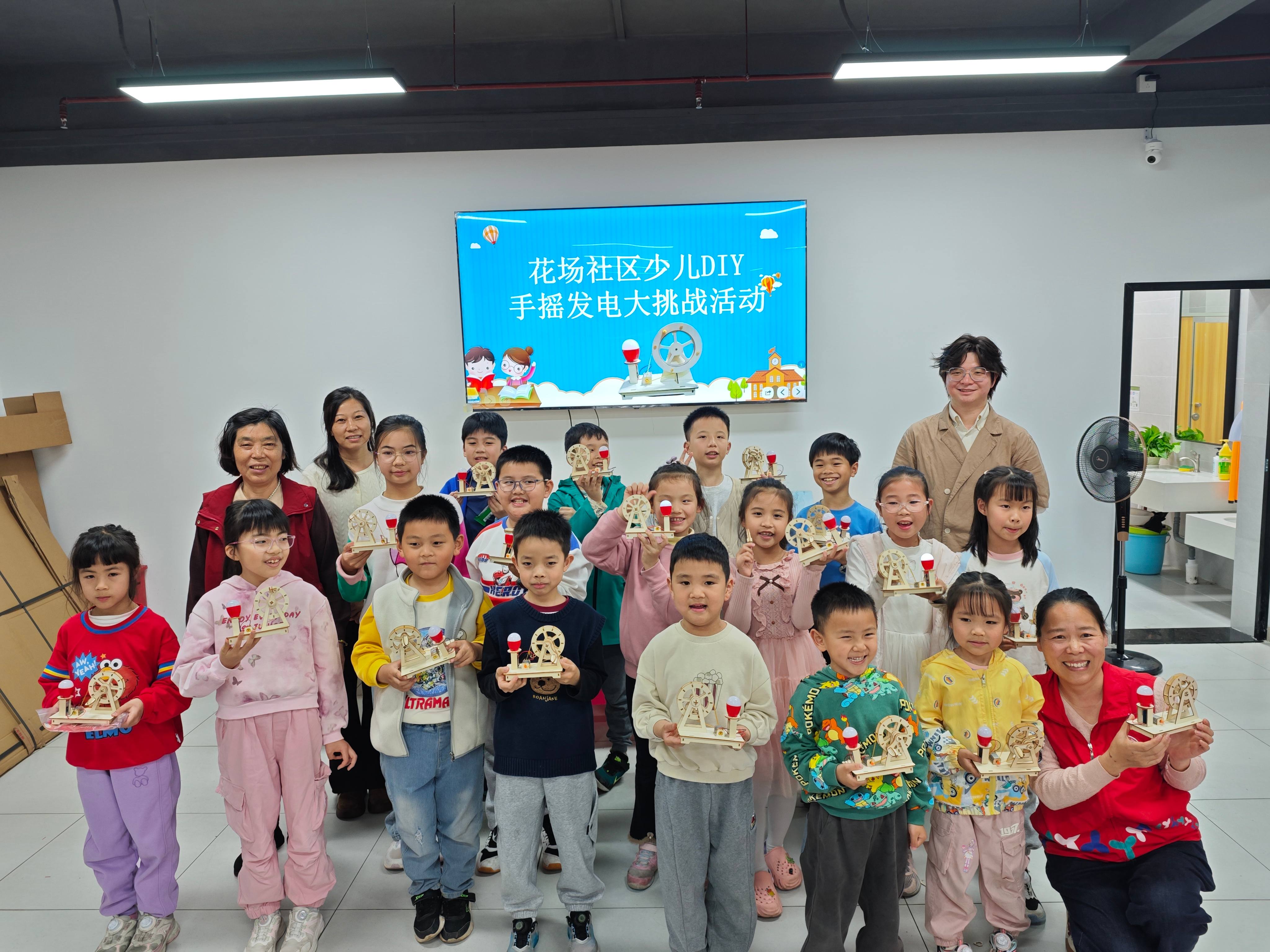 罗湖家园网讯:为丰富辖区少年儿童寒假生活,促进儿童友好社区建设,激发科学探索兴趣,提升动手实践与逻辑思维能力,2026年2月28日下午,花场社区党群服务中心北斗社工联合思考乐教育(洪湖校区)一起开展了“手摇发电大挑战,解锁能量转化奥秘”少儿DIY科学实验活动,二十多名社区少儿踊跃参与,在趣味实践中探索科学奥秘。