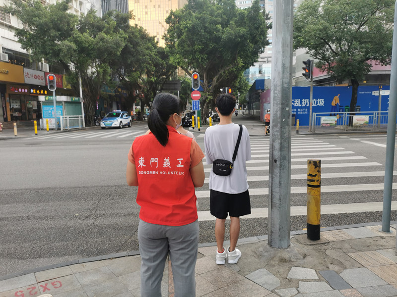 罗湖家园网讯:10月12日,湖容社区志愿者对市民过马路进行文明宣传劝导。