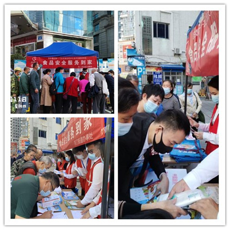 罗湖家园网讯:为提高社区居民食品安全意识、增长膳食营养知识,营造浓厚的食品安全社会共治氛围,2021年11月11日上午午,东门街道办联合湖容社区工作站、城东社区工作站、湖容党群服务中心和城东党群服务中心开展在外贸集团大厦一楼东门街道社区食品安全社会共治建设民生微实事项目——“食品安全服务到家”活动。