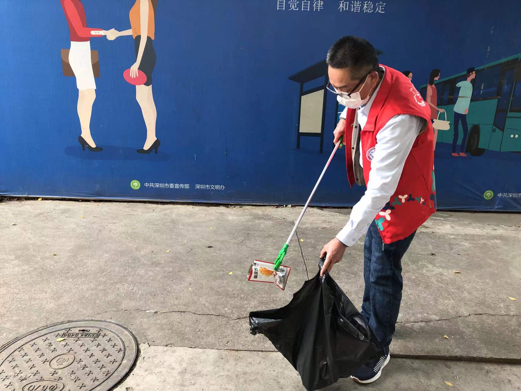 湖容社区拾拣道路垃圾助力创文