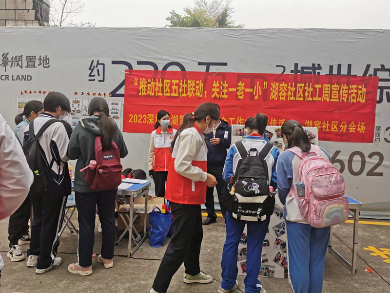 “推进五社联动关爱一小一老” ——湖容社区开展社工周宣传活动