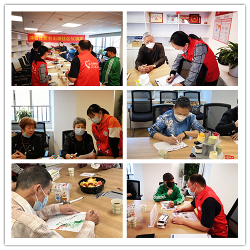 “您还记得社区的样子吗?”引起了大家的回忆,在“乌龟与乌鸦”的精彩故事中彼此间的手紧紧地握在了一起。故事坊以“湖容印象”为引子,以社区历史、社区一角,社区旧貌等主题开展,活动中卢叔说:“之前呀,湖容社区主要是湖贝旧村,已经有500年的历史,当时张氏爱月、思月、怀月、念月4兄弟分别在向西、水贝、湖贝立村……”开启了社区历史的缅怀;在社区旧貌中,也有赖叔说:“过去的社区城中村为主,房子很密,人很多,巷子里的脏乱差,各种设施不全,基本没有消防通道,缺少消防管网等问题……”;张阿姨说:“没想到拆迁后,大家已经离开了这么多年,希望故事会活动能继续开下去,既能让大家了解曾经的社区,也能让自己多一点念想。”活动最后,社工就下次活动开展相片、旧物、视频等内容的征集进行了动员,鼓励身边的更多的老街坊参与,共同为留下社区更多的美好记忆。