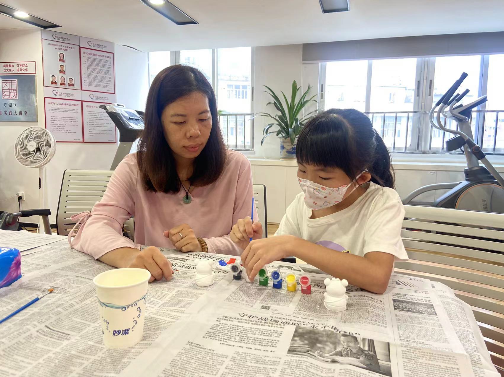 罗湖家园网讯:为了满足居民们渴望开展亲子手工活动的需求,同时促进亲子之间的互动和沟通,湖容社区党群服务中心于2023年9月10日开展亲子石膏娃娃涂色工作坊。