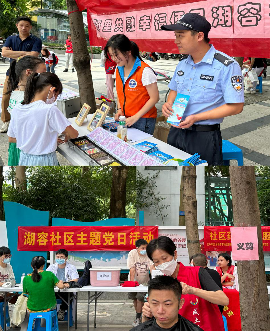 罗湖家园网讯:为了进一步弘扬社会主义核心价值观,深入开展“我为群众办实事”实践活动,给广大居民提供更加便捷贴心的服务,9月17日,湖容社区党委特邀东门街道禁毒办、麦芽口腔、爱尔眼科、固生堂中医共同在湖贝公园开展“邻里共融,幸福便民”湖容社区便民日活动暨湖容社区便民服务主题党日活动,主要是健康义诊(中医把脉、量血压,口腔、视力检查)、爱心义剪、禁毒知识科普、免费派发气球、趣味小游戏等服务。