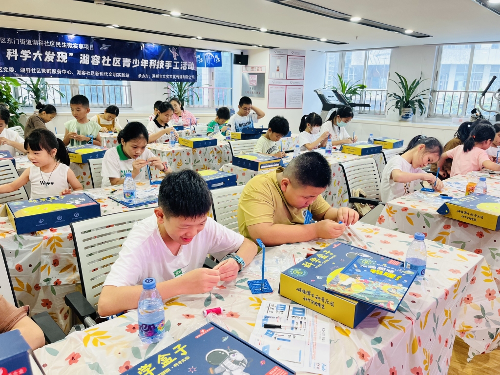 罗湖家园网讯:2023年罗湖区东门街道湖容社区民生微实事项目“趣味小实验,科学大发现”湖容社区青少年科技手工活动由湖容社区党委、湖容社区党群服务中心、湖容社区新时代文明实践站主办,深圳市立实文化传播有限公司承办。第二场活动于2023年7月27日(周四)下午14:30-16:30在湖容社区党群服务中心顺利开展,共服务20人次。