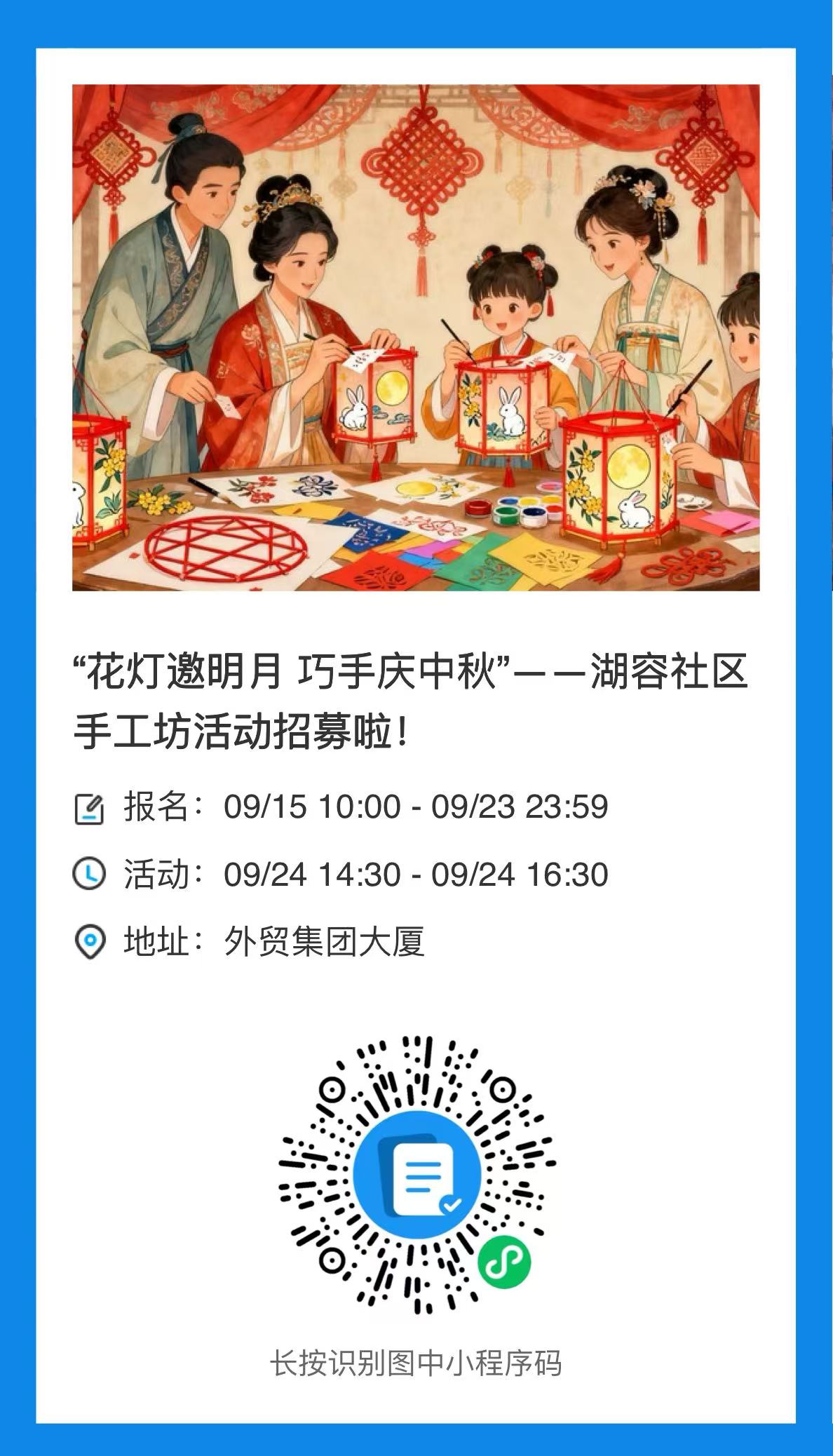 【东门街道湖容社区活动招募】“花灯邀明月 巧手庆中秋”——湖容社区手工坊活动