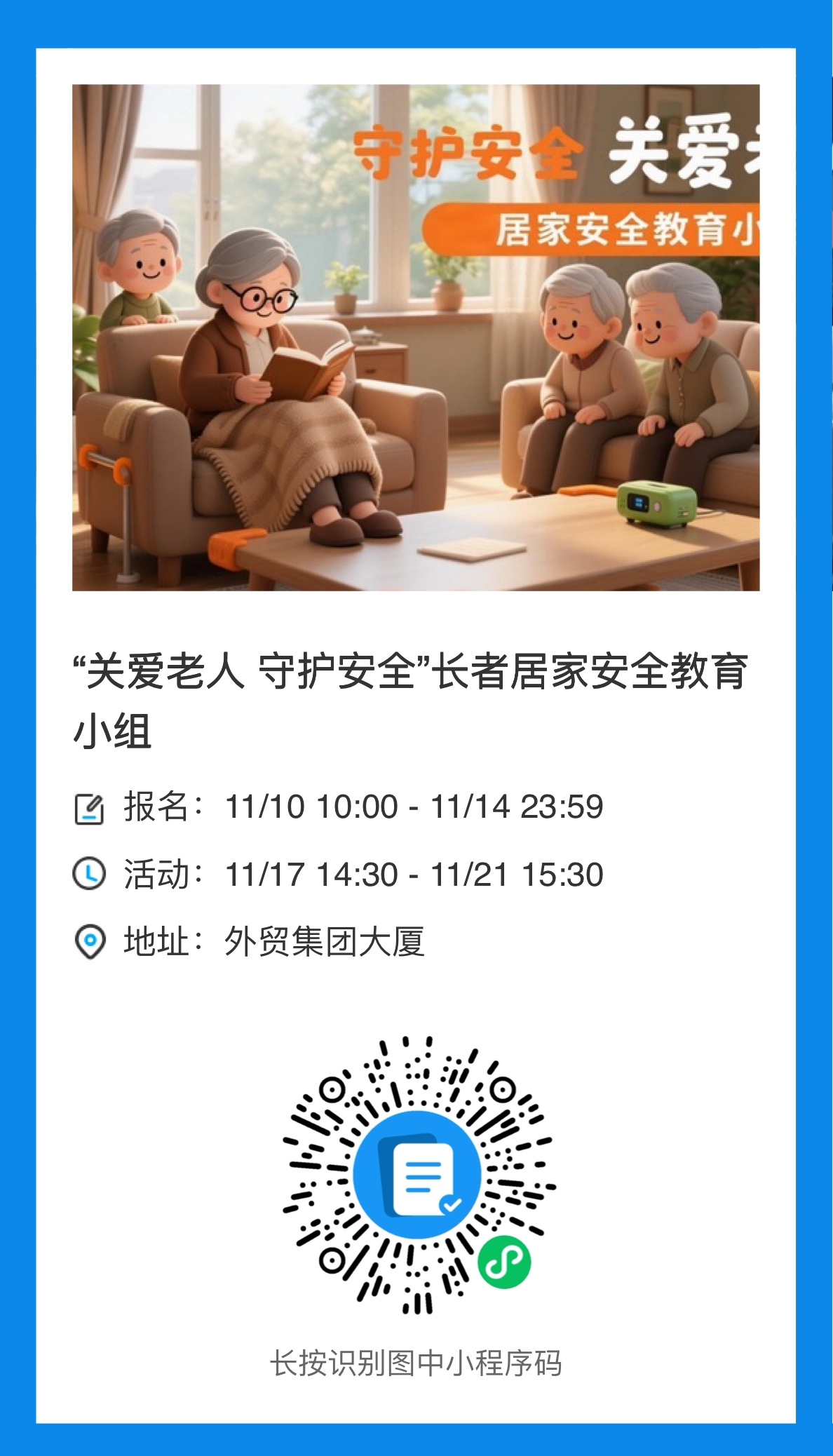 【活动招募】“关爱老人 守护安全”长者居家安全教育小组招募啦!欢迎大家踊跃报名哦!