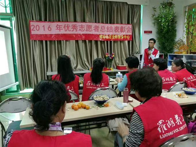 2017年1月6日上午,2016年度螺岭社区优秀志愿者总结表彰会在螺岭社区党群服务中心召开。