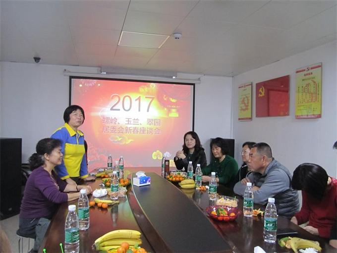 2017年1月12日,在螺岭社区工作站三楼会议室召开了螺岭、玉兰、翠园社区2017年新春座谈会。座谈会上,社区居民们畅所欲言,纷纷表达了对2016年取得的成绩的感恩和对2017 年的各种期望和祝福。最后,座谈会在祥和与喜庆的气氛中圆满结束。