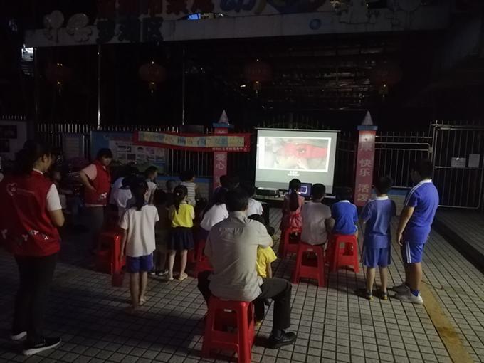 为丰富儿童青少年暑期的精神文化生活,营造和谐、温馨的社区生活氛围,让儿童们回味曾经聚在一起看露天电影的时光,7月12日晚上7点螺岭社区党群服务中心社工在聚龙大厦小区广场开展“缤纷螺岭,快乐一夏”观影活动。