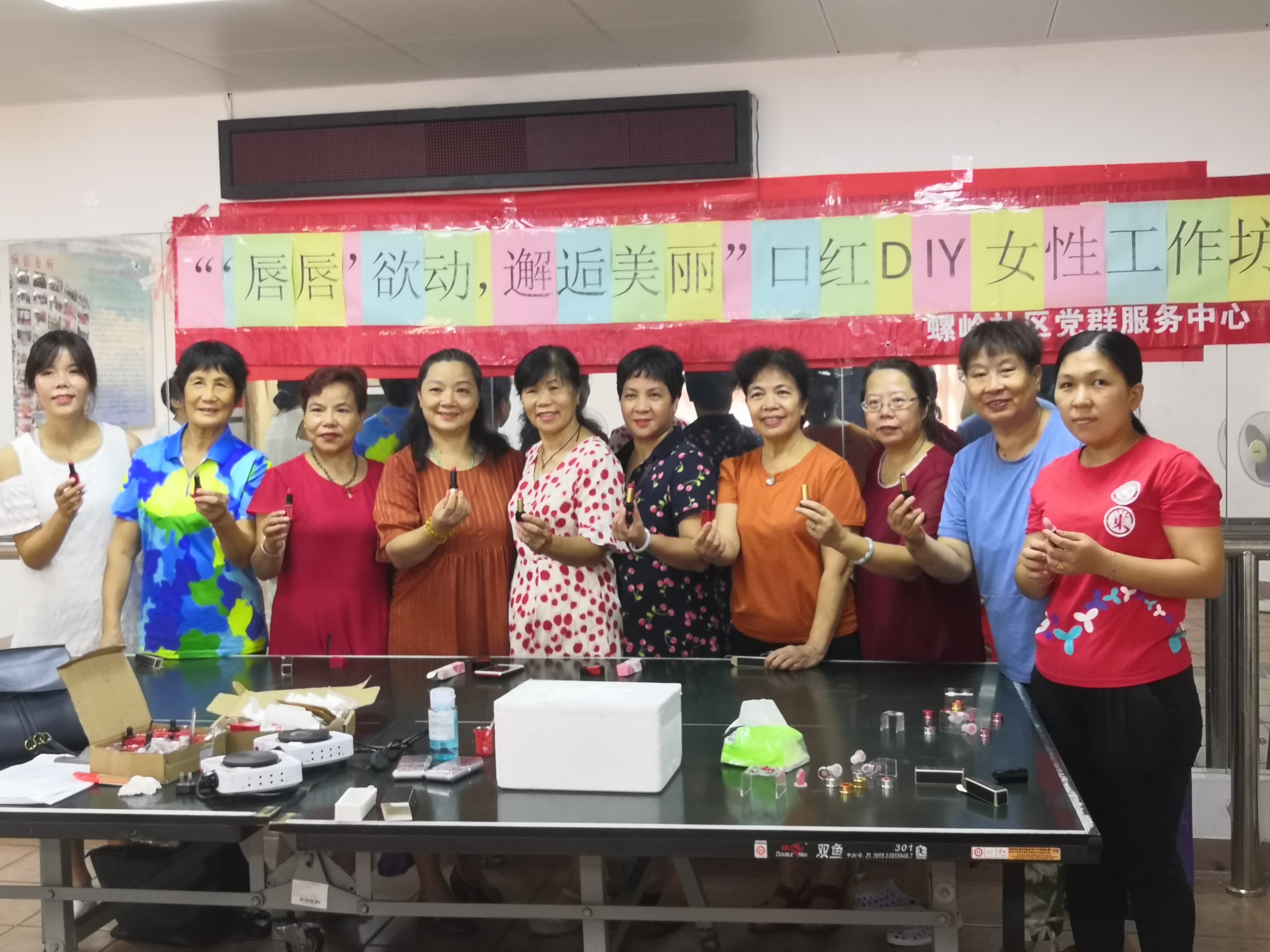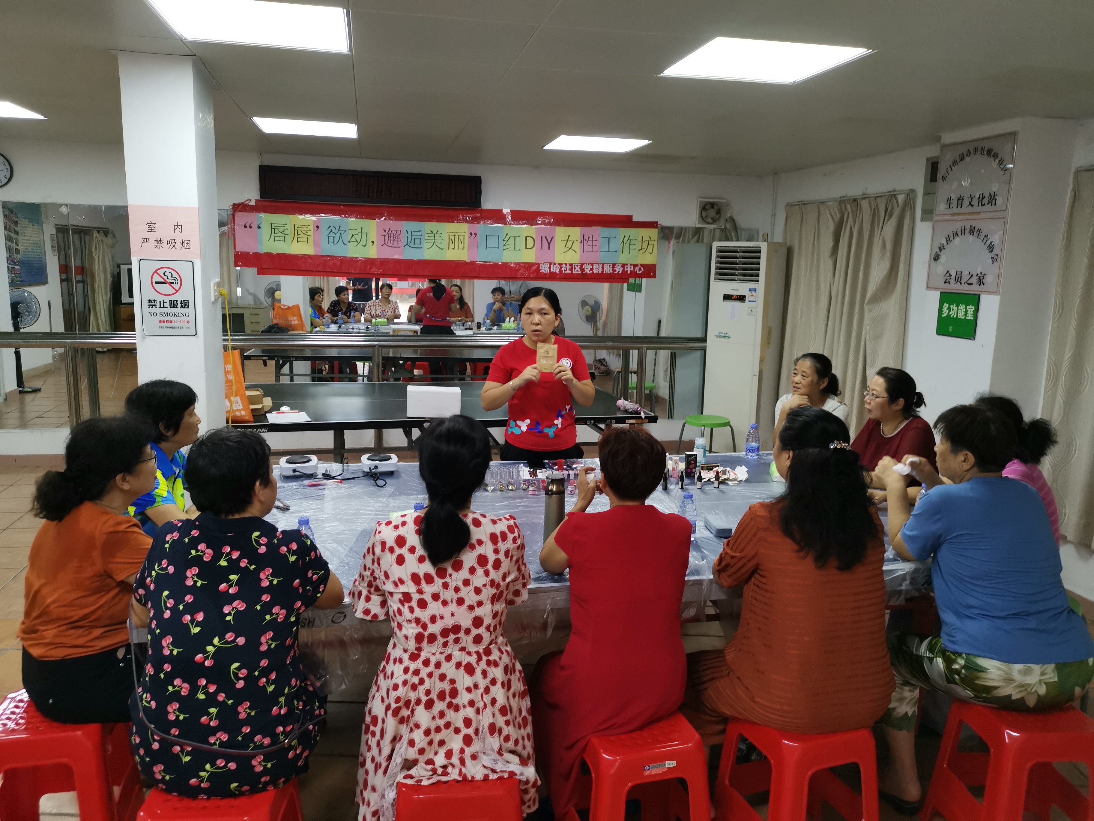 为了传播健康美丽的生活理念,丰富社区广大女性业余生活,融洽彼此邻里关系,2019年8月23号下午3点到5点,螺岭社区党群服务中心社工在星光老人之家开展“‘唇唇’欲动,邂逅美丽”口红DIY女性工作坊活动。参加者们都没有自己亲手制作过属于自己的口红经历,故对此都表示了很大的兴趣及热情。