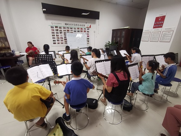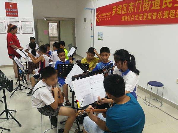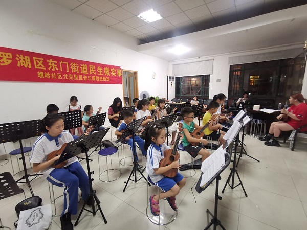 罗湖家园网讯:近期,螺岭社区民生微实事项目之尤克里里音乐课程进阶班继续进行。课程已接近尾声,老师悉心地教导各种指弹手法及常用和弦,并一对一悉心矫正学员的手势和把位。同时,与学员们进行问答互动,现场气氛高涨,学员们现已能基本弹奏简单的曲目,对尤克里里的兴趣也愈发浓厚。
