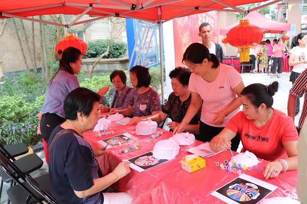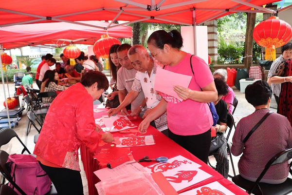 下午3点,神采奕奕的舞狮表演为本次游园活动拉开了序幕,会场设置了精细巧妙的中国结编织区、优雅而富有魅力的茶道展示区、创意有趣的脸谱绘画区、开动智力的棋艺比赛区、传统艺术剪纸区、丰富有内涵的爱国影片播放区,居民们热情地参与其中,既动手又动脑,体验着中国传统文化魅力,居民们积极踊跃的参加游戏,通关每个区域还能兑换丰富的奖品,在传统文化的碰撞下,长者、年轻人、儿童脸上均洋溢着灿烂的笑容。