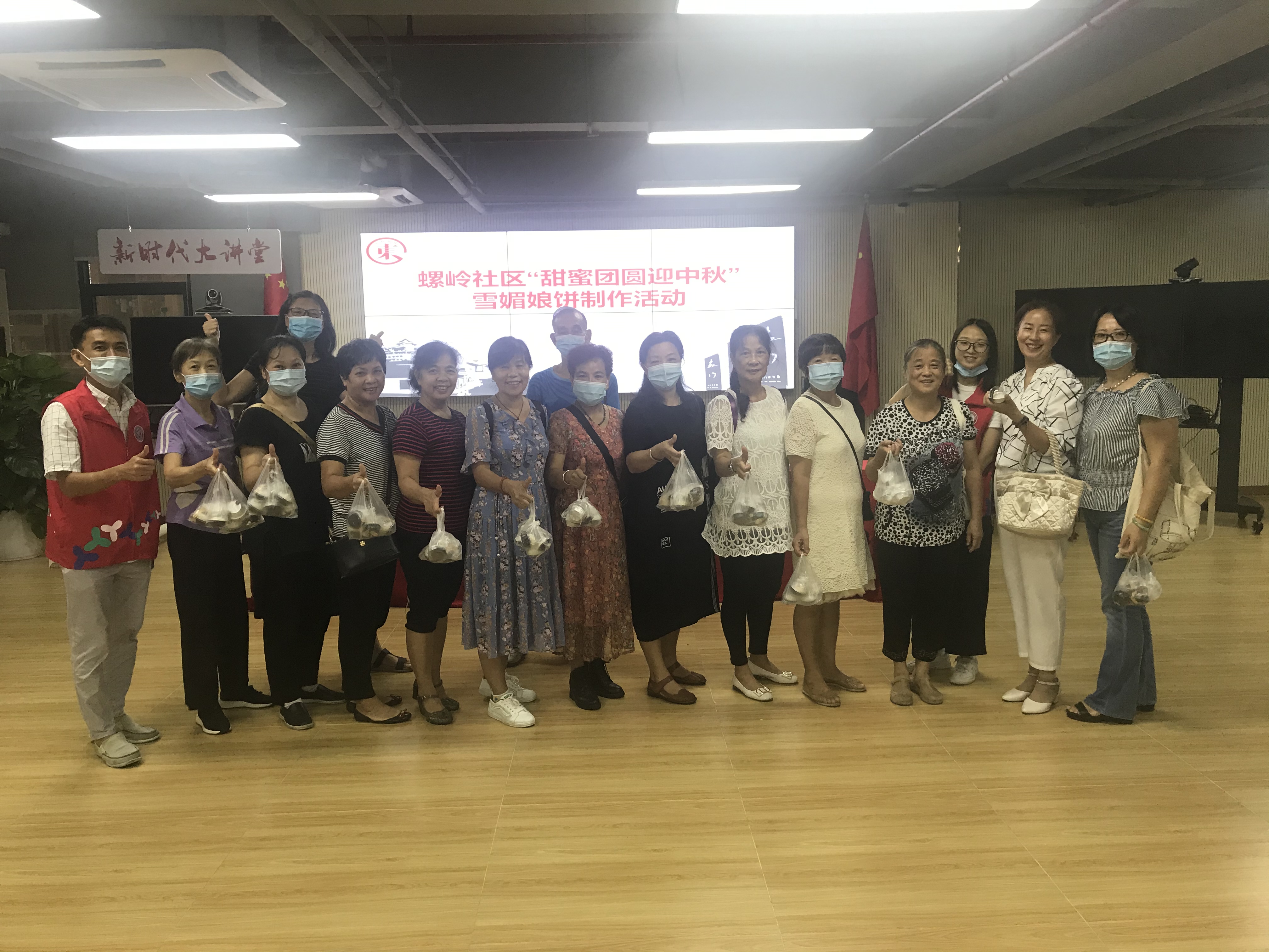 罗湖家园网讯:为了传递积极向上的生活态度,让居民感受到中国传统节日的气氛和了解传统节日的内涵。2020年9月30日下午,螺岭社区党群服务中心在6楼活动室举办了以“甜蜜团圆迎中秋”为主题的雪媚娘饼制作活动。