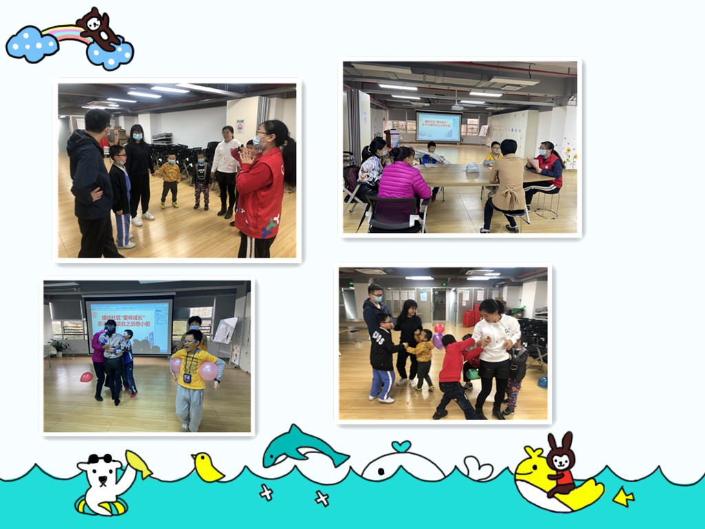 小组第三节设置了快乐传递、合力建塔、美食制作环节,最后家长与孩子共同制作爱心贺卡,后续用于探访社区独居长者。