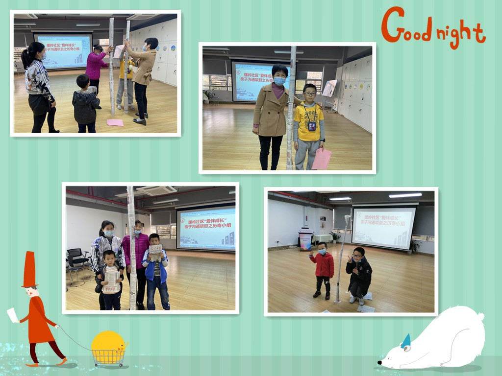罗湖家园网讯:2021年1月23日,在螺岭社区党委统筹引领下,螺岭社区党群服务中心开展了“爱伴成长”亲子沟通项目之历奇小组最后一节,小组主要通过历奇辅导的方式,让参与家庭在体验中感受正面沟通。