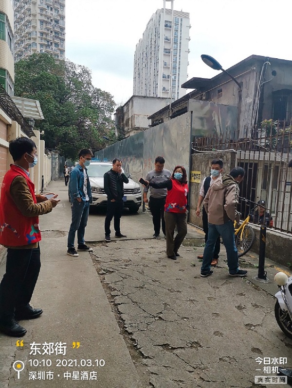 罗湖家园网讯:2021年3月10日上午,螺岭社区协调罗湖区水务局、罗湖区水务局第三方施工单位、相关物业管理单位在东郊街现场协商落实路面修复工程。现场各单位就工程施工时间、前期需要解决的问题和施工期间注意事项等进行商议。现场议定:工程3月15日开工,工期3天,管理处负责协调清除路面临时停放车辆,施工单位加强施工现场围挡和安全管理并向社区反馈工程进展情况,社区工作站加强安全巡查。