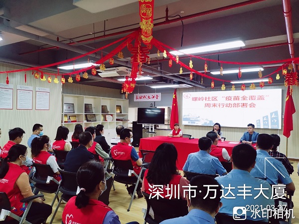 螺岭社区党委书记骆艺本着党建引领原则,召开了社区两委班子成员会议,和“晚间行动部署会”与“周末行动部署会”,全面部署全体工作人员推动疫苗接种工作,要求两委成员要以身作则,带领工作站的同事开展动员居民进行新冠疫苗接种宣传行动,通过辖区微信群、社区宣传栏、工作人员入户、设置摊位、悬挂横幅、张贴海报、派发宣传单等方式大力宣传接种疫苗的重要性,号召辖区居民积极参与接种疫苗工作。