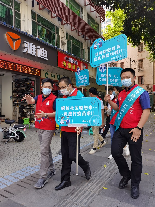 罗湖家园网讯:2021年4月21日下午,市委编办政策体改处党支部深入螺岭社区,参与“助力疫苗接种,共筑免疫长城”志愿服务活动。他们在疫苗接种点协助引流,引导市民有序进行疫苗预约、接种、测体温,为前来咨询的市民解答疑解惑。接着,他们深入辖区小巷开展疫苗接种宣传活动。他们的到来,补充了螺岭社区新冠疫苗接种宣传的后备力量,与社区工作人员、志愿者们共同推进疫苗接种工作平稳、高效开展。
