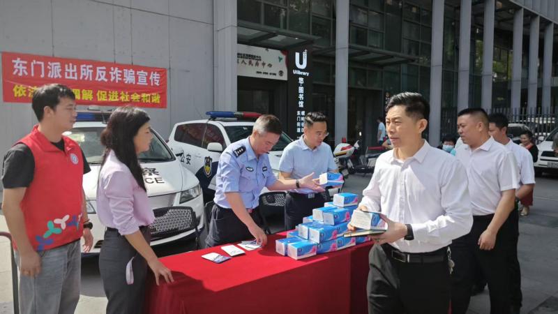 活动伊始,东门街道派出所警官在会议室带来防诈骗主题讲座。通过剖析近期高发的网络购物诈骗、冒充公检法诈骗等典型案例,结合生动的互动问答,深入浅出地向居民传授防诈骗技巧。现场居民积极参与,纷纷就生活中遇到的可疑情况向警官请教,学习氛围热烈。讲座结束后,警官与社区工作者来到楼下广场开展防诈骗宣传外展。