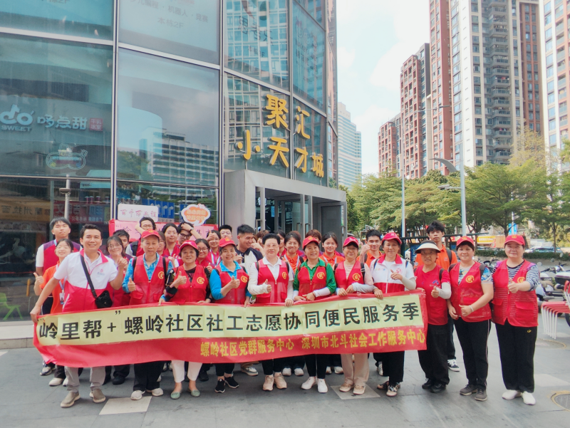 罗湖家园网讯:为深入落实“百千万工程”,社区服务的高质量发展成为提升居民生活品质的关键。2025年4 月 23 日下午,在螺岭社区党委指导下,深圳市北斗社工服务中心驻螺岭社区党群服务中心以 “专业社工 + 志愿服务” 双工融合为引擎,于聚汇・小天才城前广场成功举办 “‘岭’里帮+”社工志愿协同便民服务活动,为居民带来一场暖心的服务盛宴。
