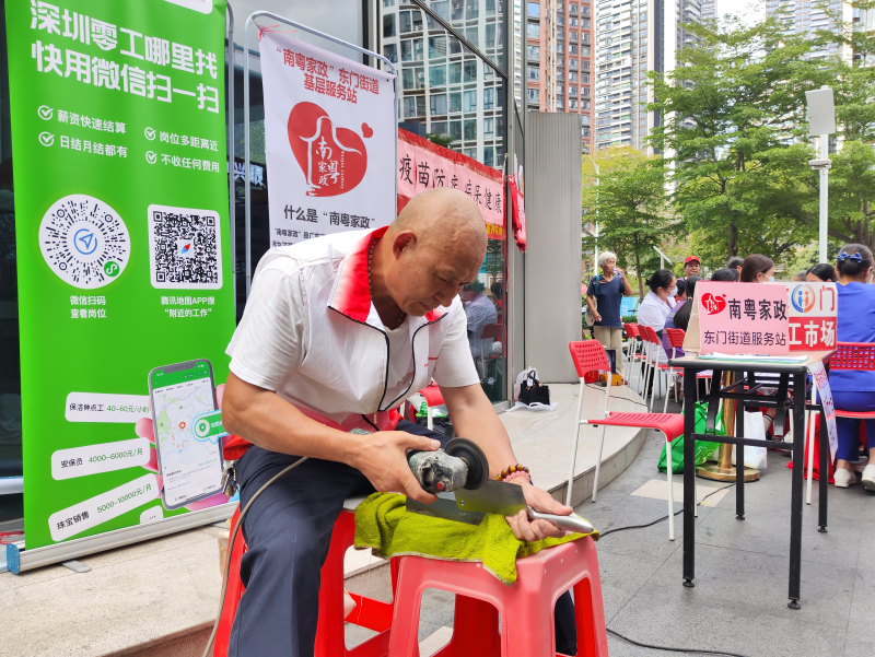 作为社工,我们深知辖区服务需精准对接群众需求。在本次活动中,我们积极发挥资源整合者的角色,首次引入深圳职业技术大学师生团队,联合首脑美容美发学校学员、石榴籽志愿者服务队、湖贝社康医护人员及社区党员志愿者等多元力量。这些不同领域的服务主体,如同拼图般紧密结合,为居民提供了小家电维修、爱心义剪、刀具打磨、家政咨询、血压血糖检测、健康咨询、衣物缝补等丰富服务。现场看到居民们满意的笑容,听到他们由衷的感谢,我们更加坚定了服务的初心。一位前来理发的老人笑着说:“不用跑远,在家门口就能理发,太方便了!”
