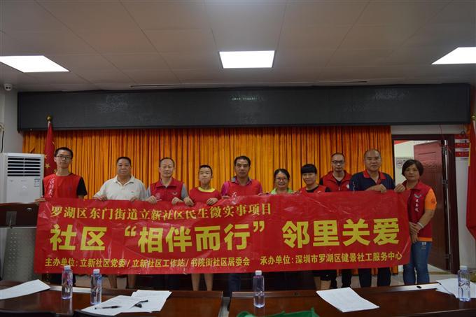 2018年7月28日上午9点半,在罗湖区东门街道民生微实事项目支持下,立新社区党群服务中心在立新花园13栋G层会议室开展了-立新社区“相伴而行”邻里关爱第一场。立新社区“爱心义工队伍”由:小区里爱心、热心人士、经验丰富的五星级义工、家庭式构造义工等方式组成 。