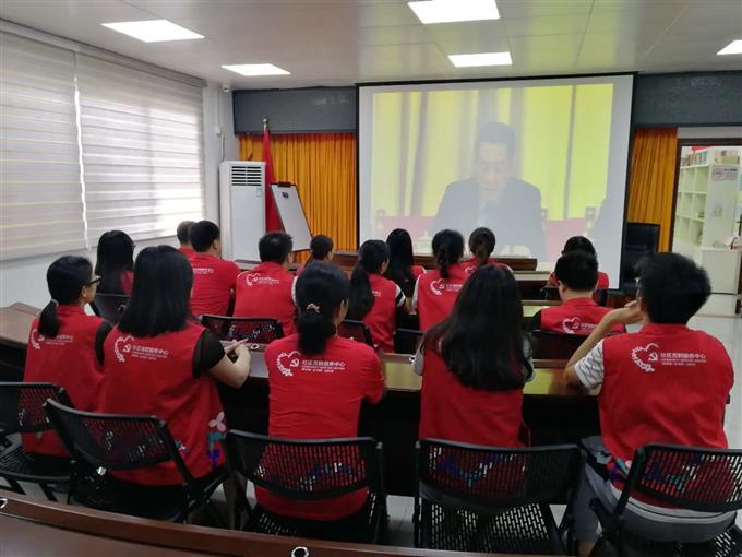 2018年8月6日下午,立新社区组织观看学习罗湖区第七届委员会第六次全体会议直播。
