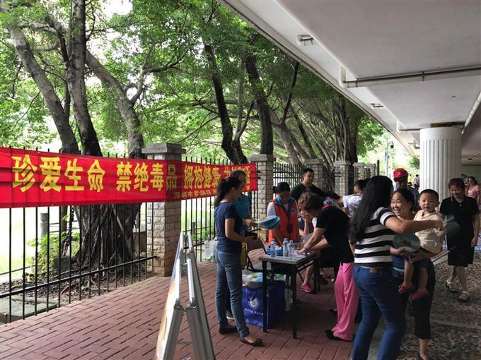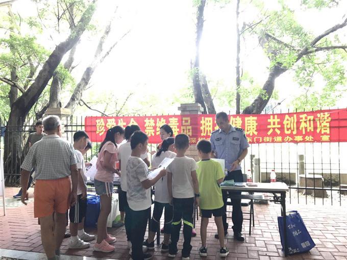 2018年8月17日上午10:00整,东门街道立新社区工作站在人民公园桥下开展“珍爱生命,禁绝毒品,拥抱健康,共创和谐”宣传活动。