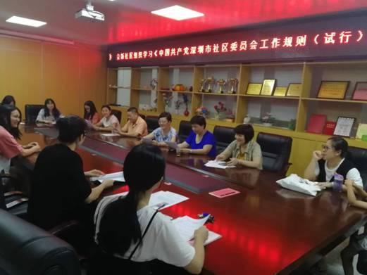 按照中央第十二巡视组反馈深圳意见整改的工作部署, 2018年08月24日, 立新社区党委副书记刘丽如同志组织立新社区“两委”委员、立新社区工作站党支部党员及站内工作人员召开会议,组织学习《中国共产党深圳市社区委员会工作规则(试行)》。会前,立新社区党委坚持落实“第一议题”学习制度,深入学习习近平新时代中国特色社会主义思想和党的十九大精神。会上,刘丽如同志依次传达了文件精神。并强调必须以习近平新时代中国特色社会主义思想为指导,把党的政治建设摆在首位,坚持和加强党的全面领导,坚持党要管党、全面从严治党,坚持以人民为中心的发展思想,坚决贯彻党的理论和路线方针政策,依照党章履职尽责。
