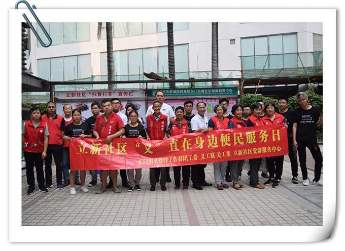 2019年4月8日下午3点半,在东门街道党群工作部团工委、义工联、关工委等单位的支持下,立新社区党群服务中心在东门立新花园4栋门前广场开展了-4月份立新社区“义”直在身边便民服务日常规服务。
