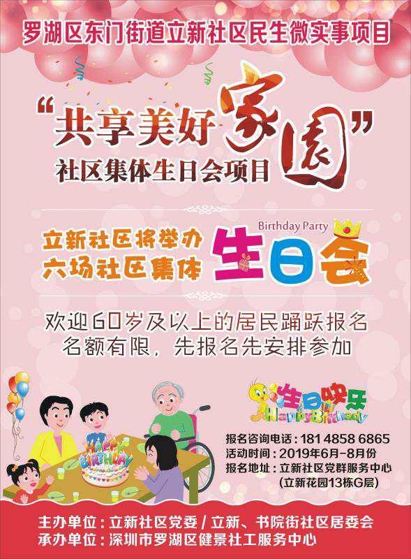 2019年东门街道民生微实事项目~“共享美好家园社区”集体生日会开始报名了