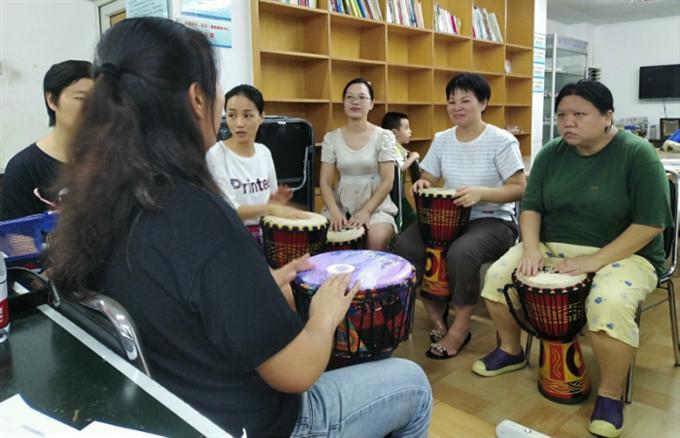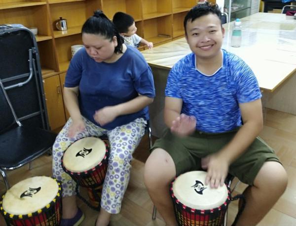 罗湖区民生微实事项目东门街道立新社区“欢乐鼓点·爱在罗湖”社区残障人士快乐成长计划从5月份开始至今,已在书院街社区职康中心为社区喜欢音乐的天使们开展了十节课的非洲鼓的学习。学员们从开始的不知非洲鼓为何物,到今天能熟练地演奏出三到四首简单的乐曲,学员们在分享自己的学习心得时,笑到口都合不拢,说从来没有想到自己也能如此轻巧地拍打出如此美妙的音乐,在音乐中终于找到了失去很久的快乐。