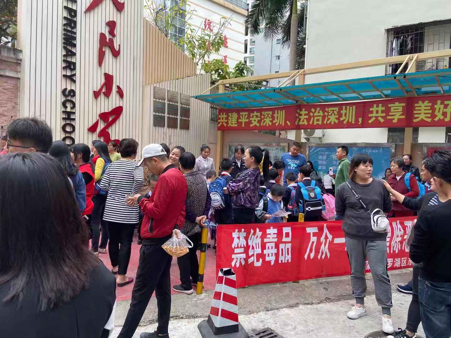 讯:2019年12月16日,立新社区在人民小学门口开展禁毒宣传活动。
