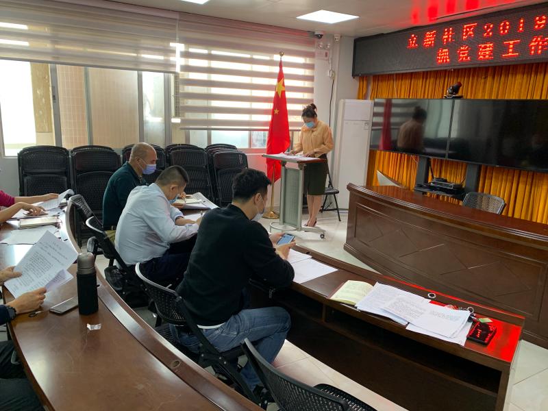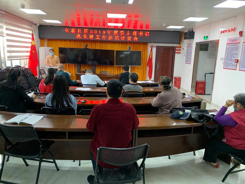 讯:2020年4月26日上午9点30分,立新社区召开2019年度党支部书记党建工作述职评议会。