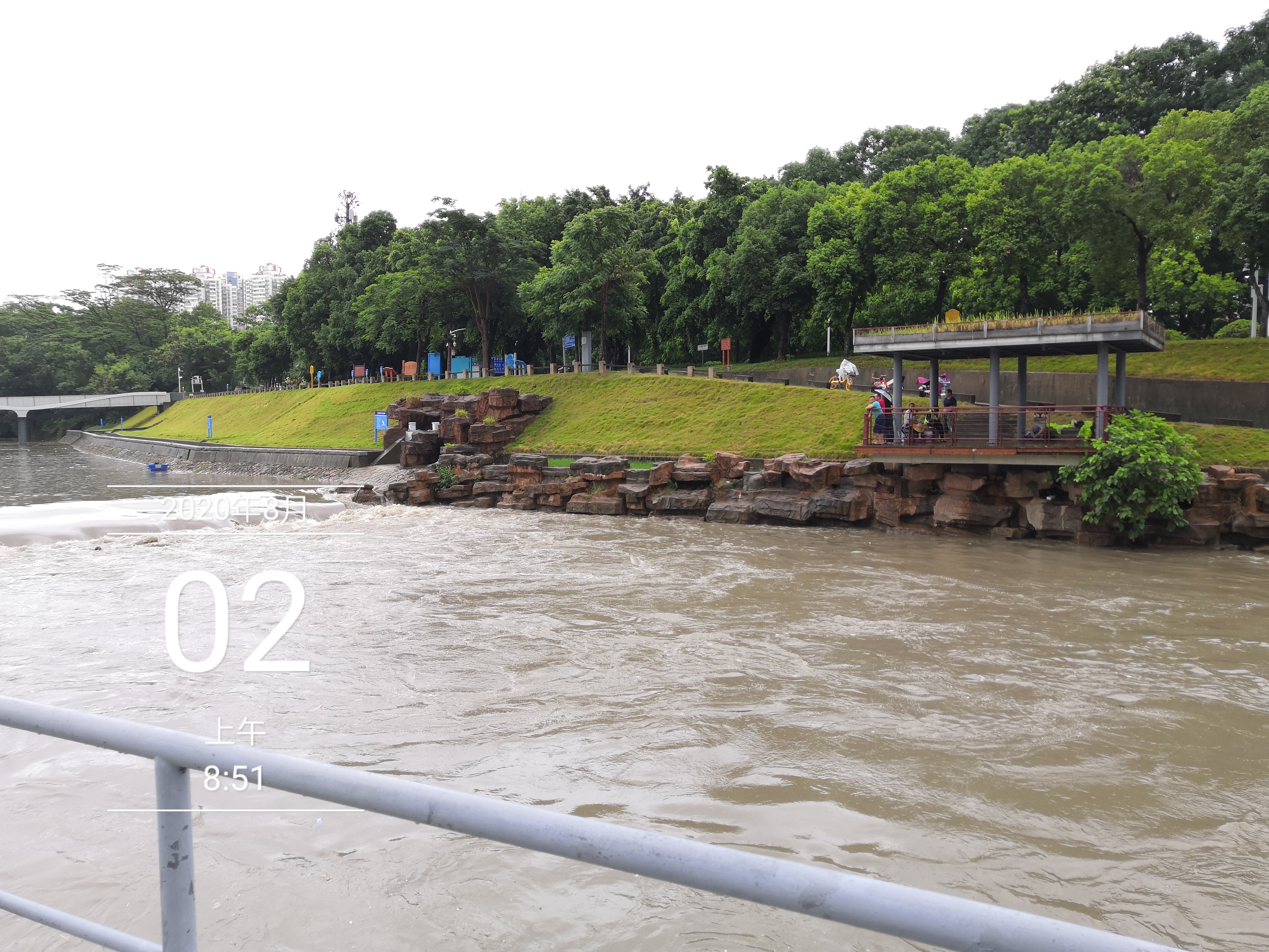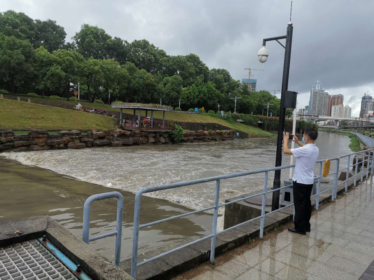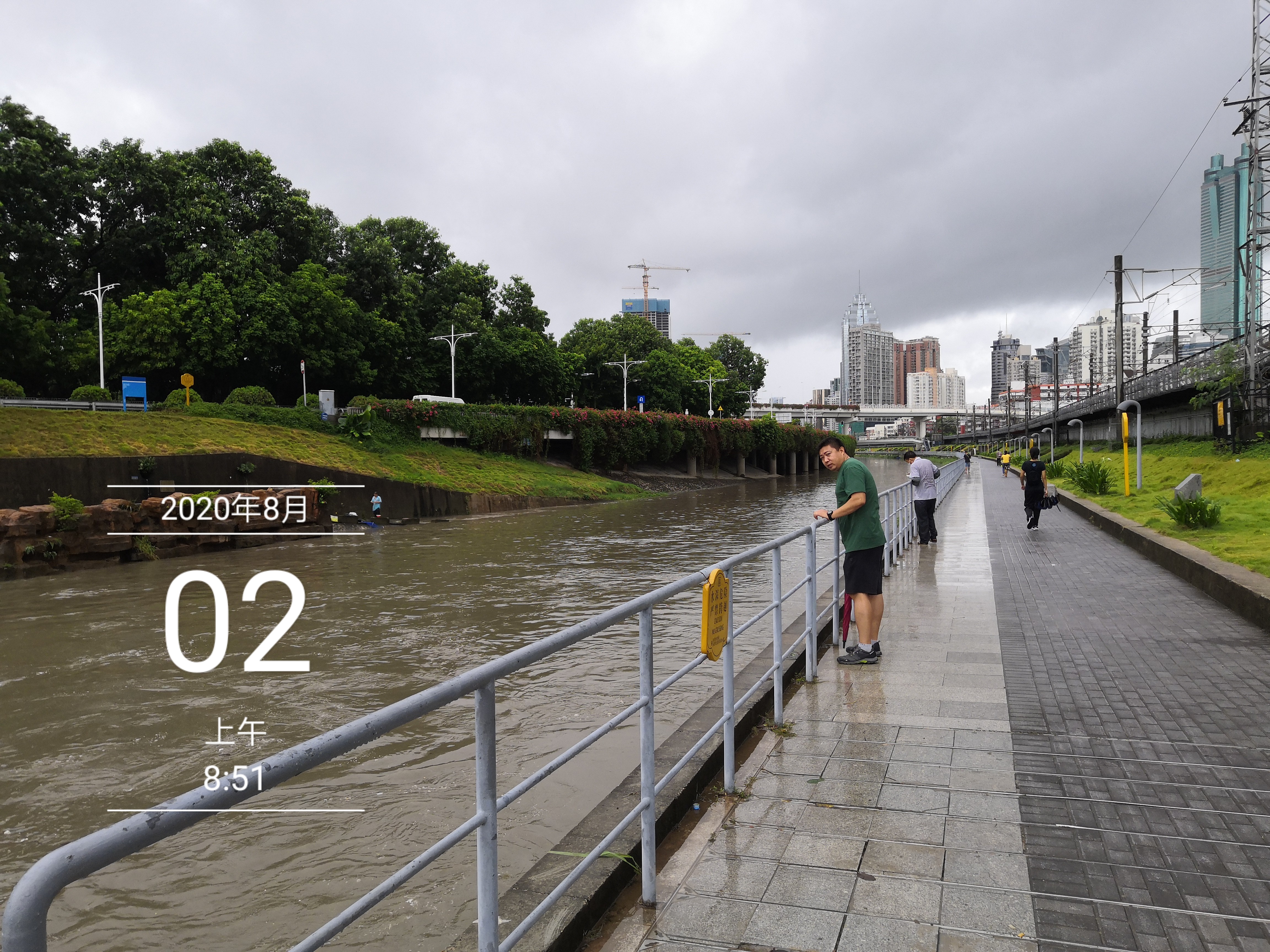 讯:2020年8月2日,立新社区工作人员到布吉河立新段进行巡查,河水上涨浑浊,河边有人钓鱼。