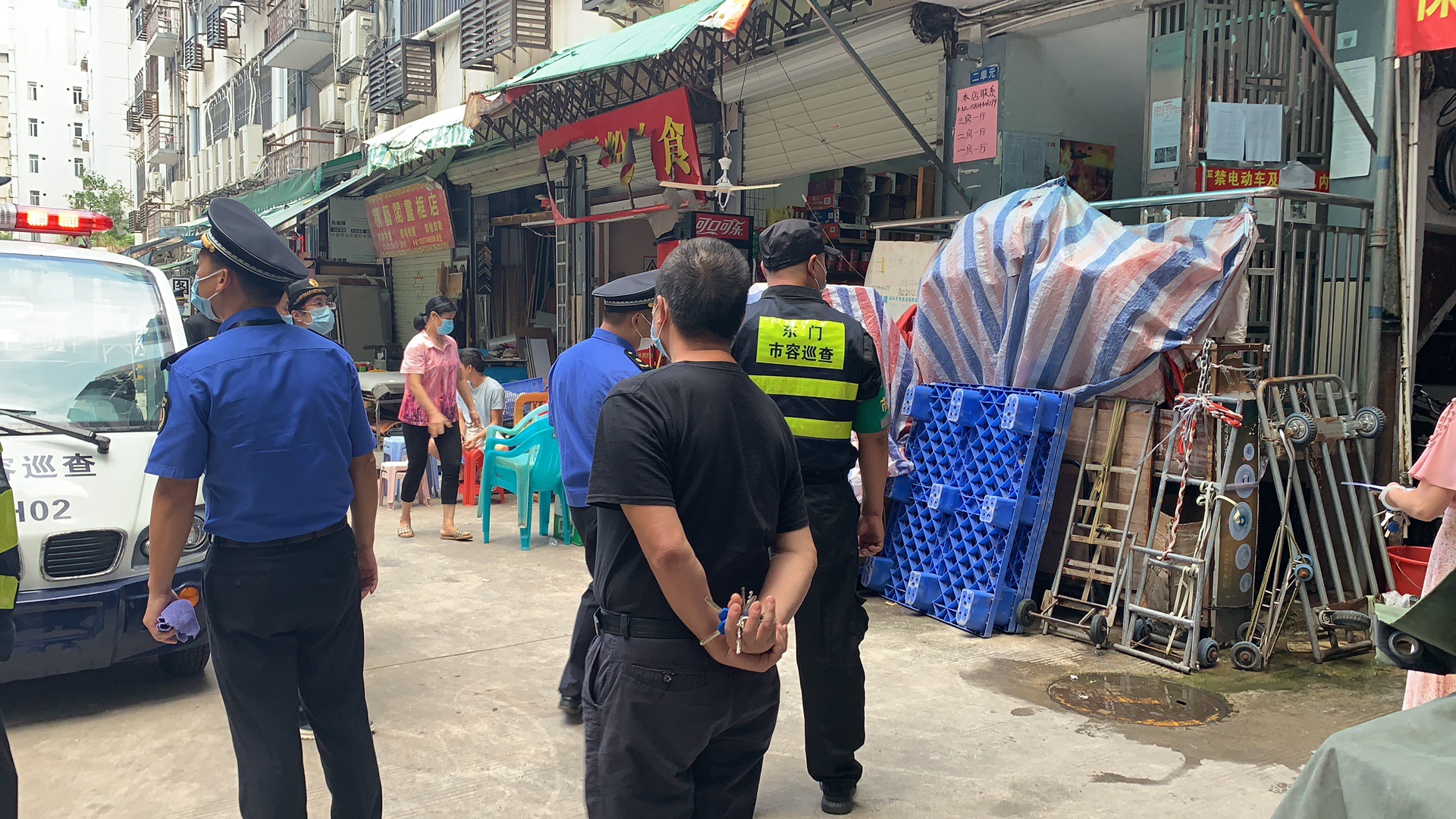 讯:2020年8月20日立新社区工作人员巡查辖区垃圾乱堆放问题。