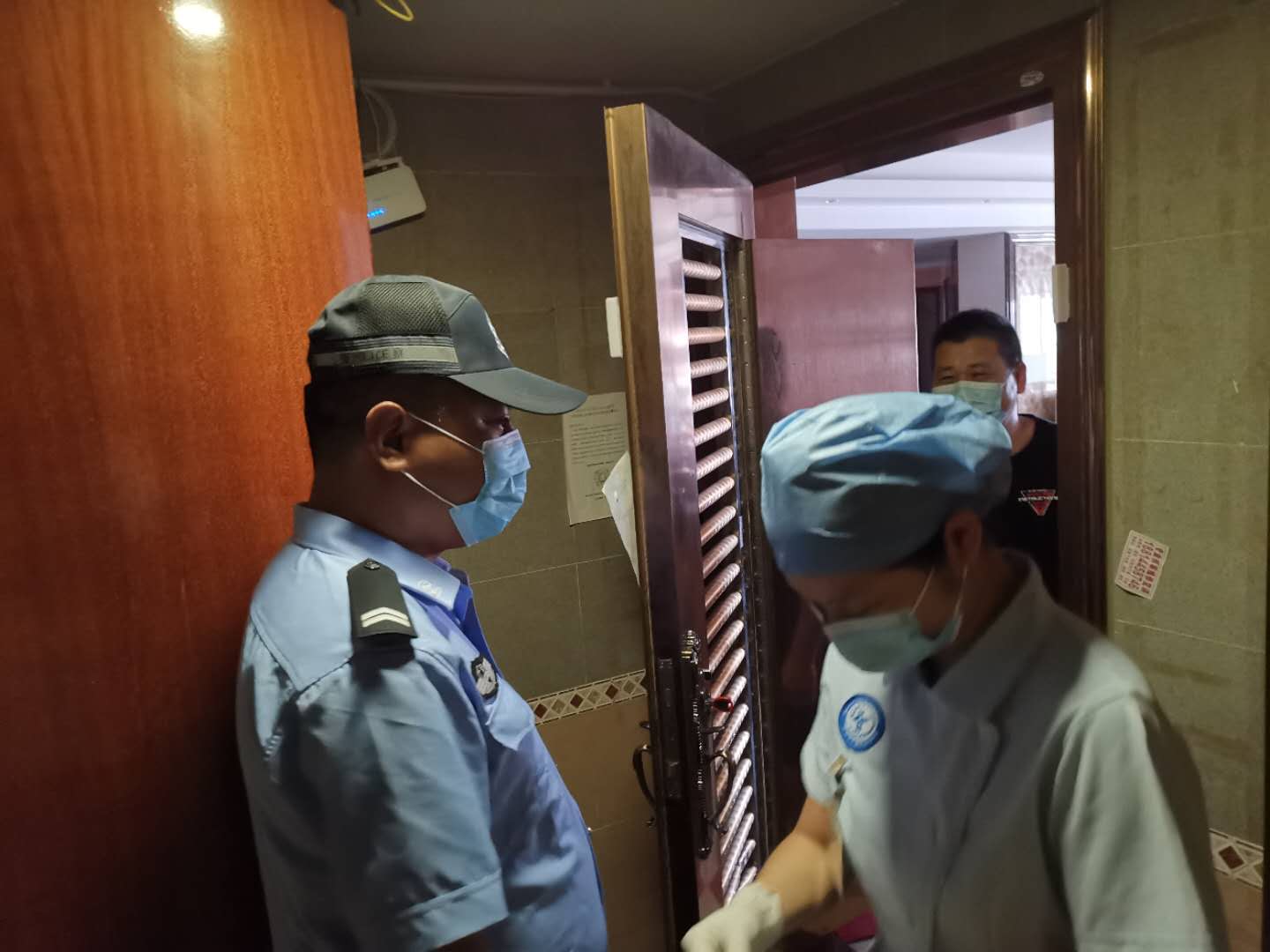 讯:2020年10月2日,立新社区三位一体工作人员到南海中心B座7H解除居家隔离。